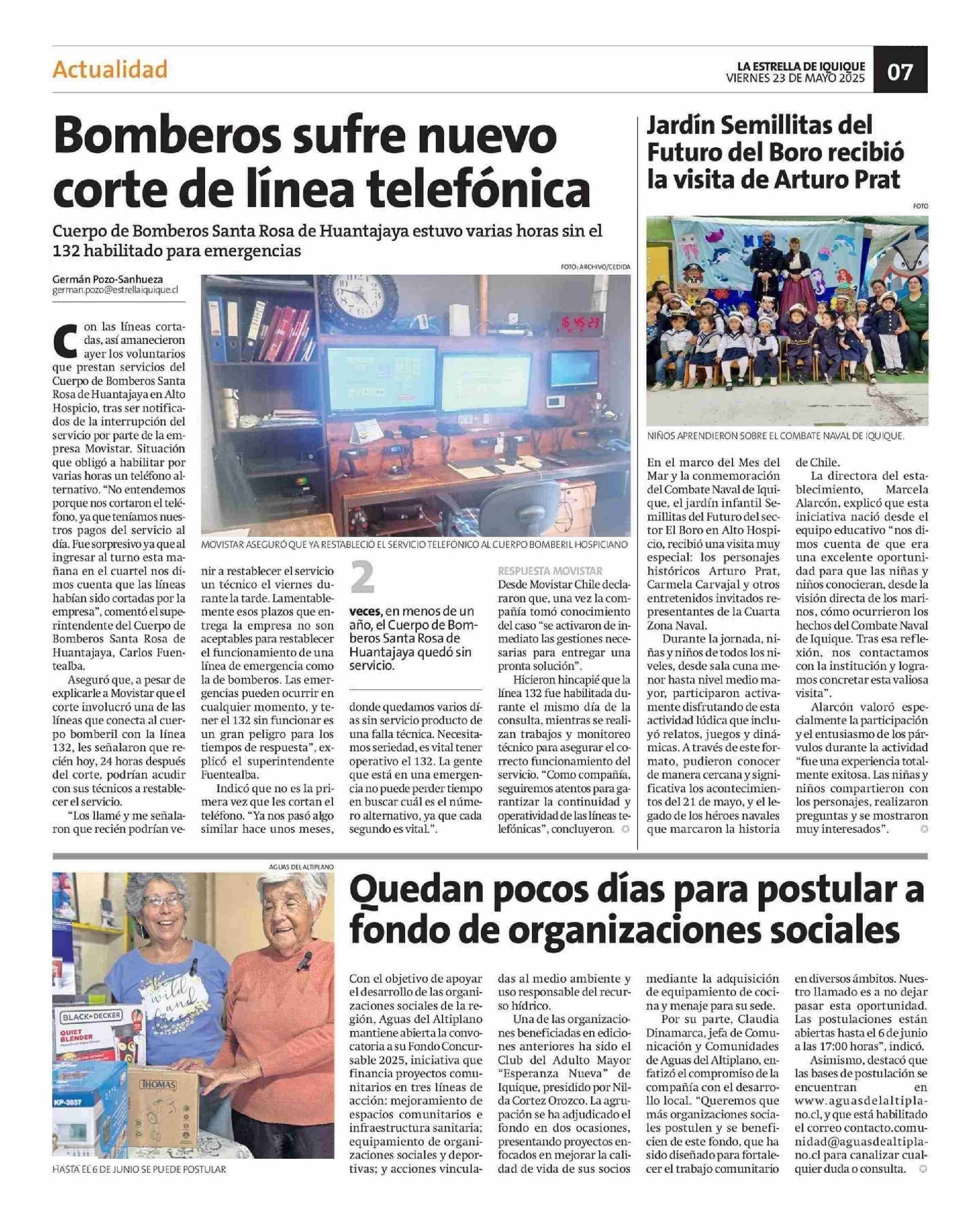| Fecha: | 23-05-2025 | Sector: | Noticia general | Región: | Región de Tarapacá |