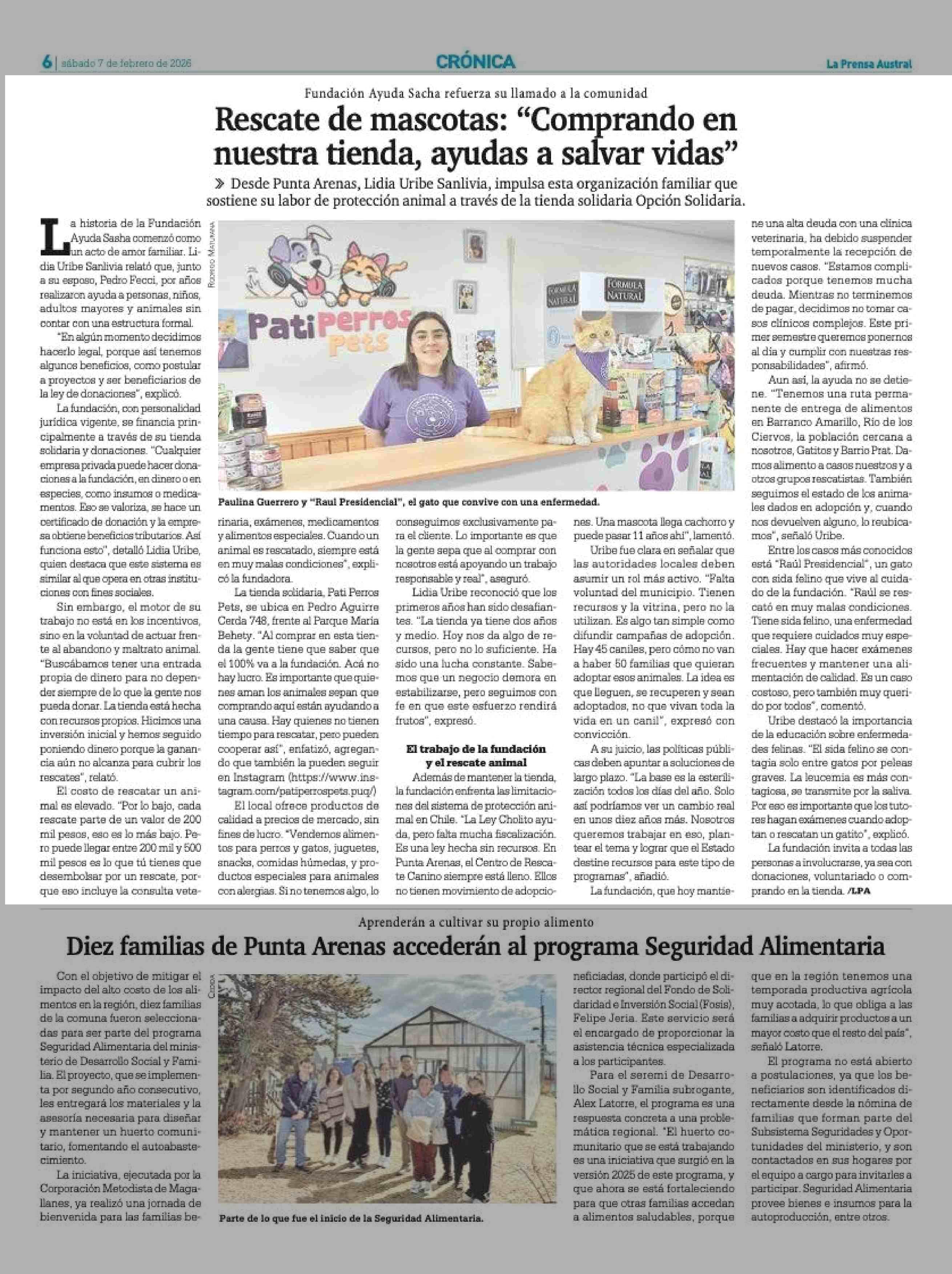 Rescate de mascotas: “Comprando en nuestra tienda, avudas a salvar vidas” 07-02-2026 La Prensa Austral |