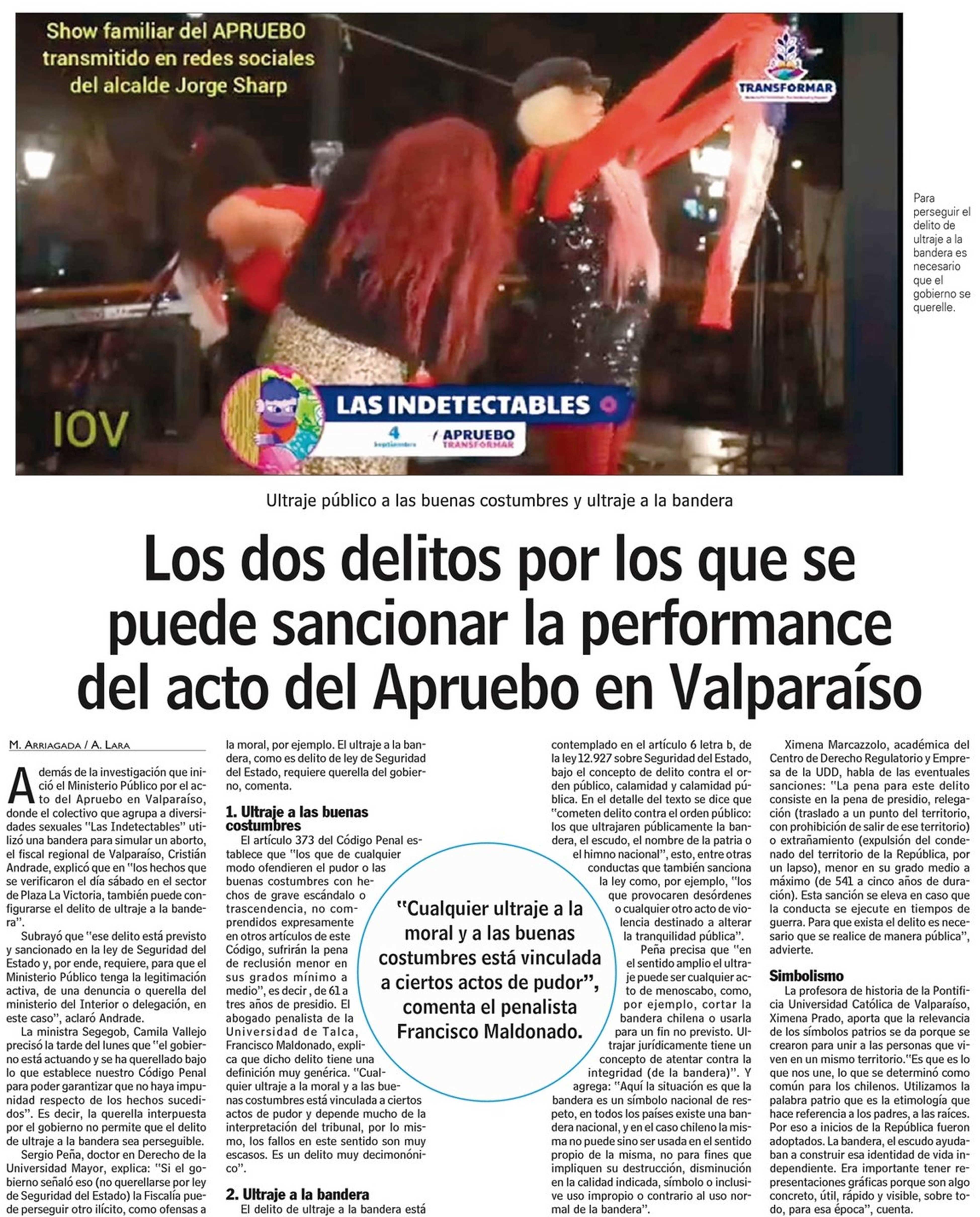 | Título: | Los dos delitos por los que se puede sancionar la performance del acto del Apruebo en Valparaiso |