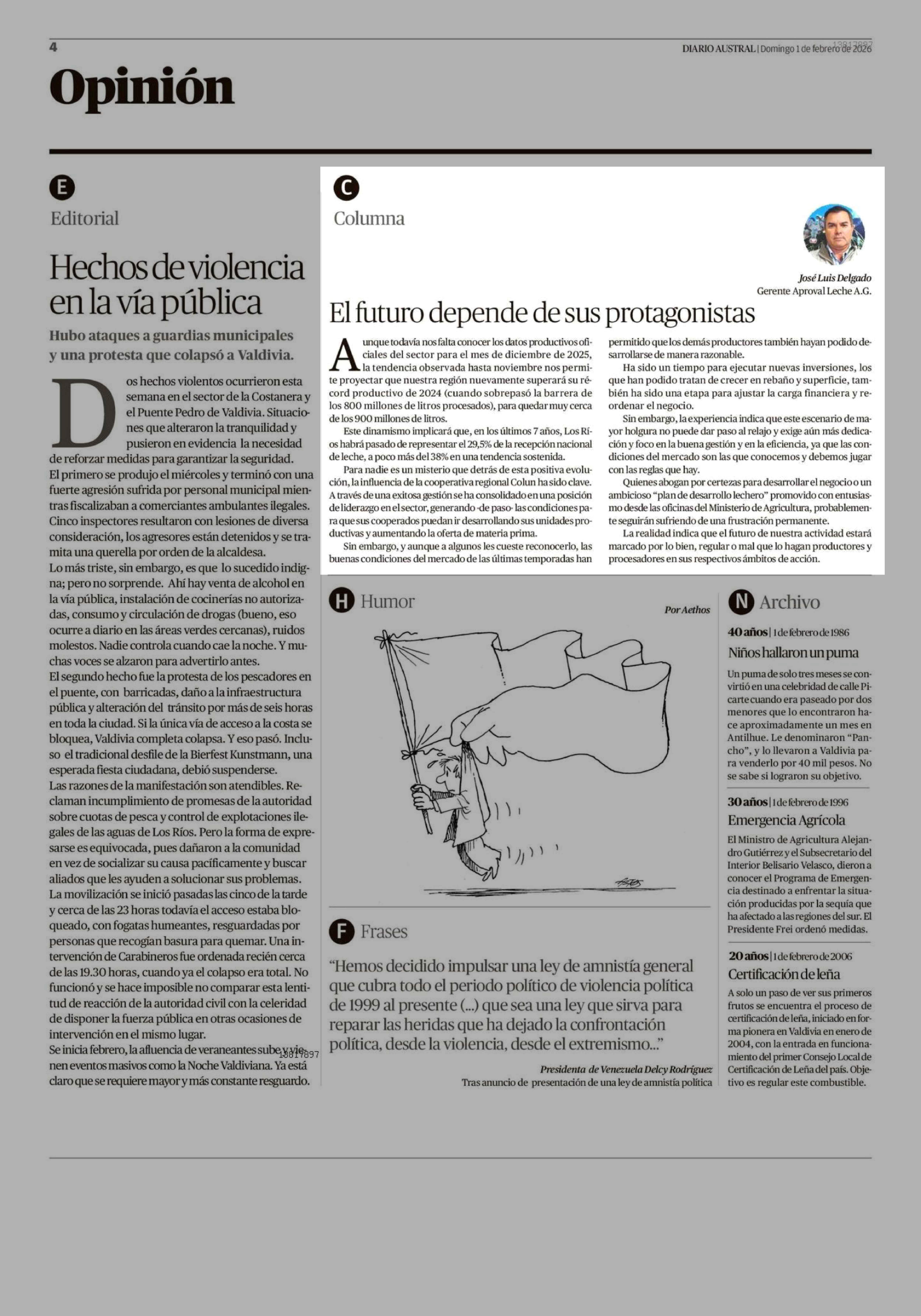 Columnas de Opinión: El futuro depende de sus protagonistas 01-02-2026 Diario Austral Región de Los Ríos |