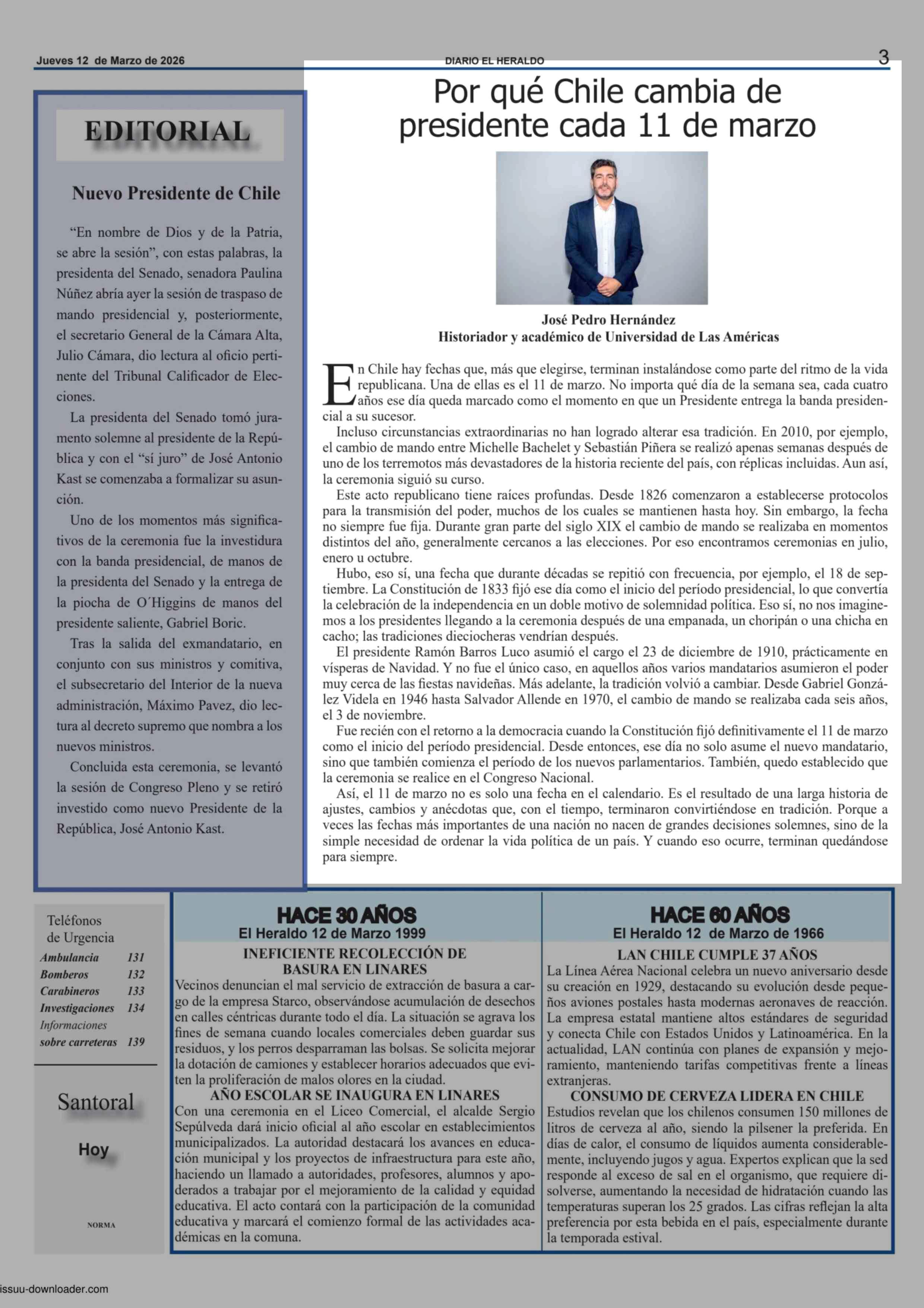 Por qué Chile cambia de presidente cada 11 de marzo 12-03-2026 El Heraldo |