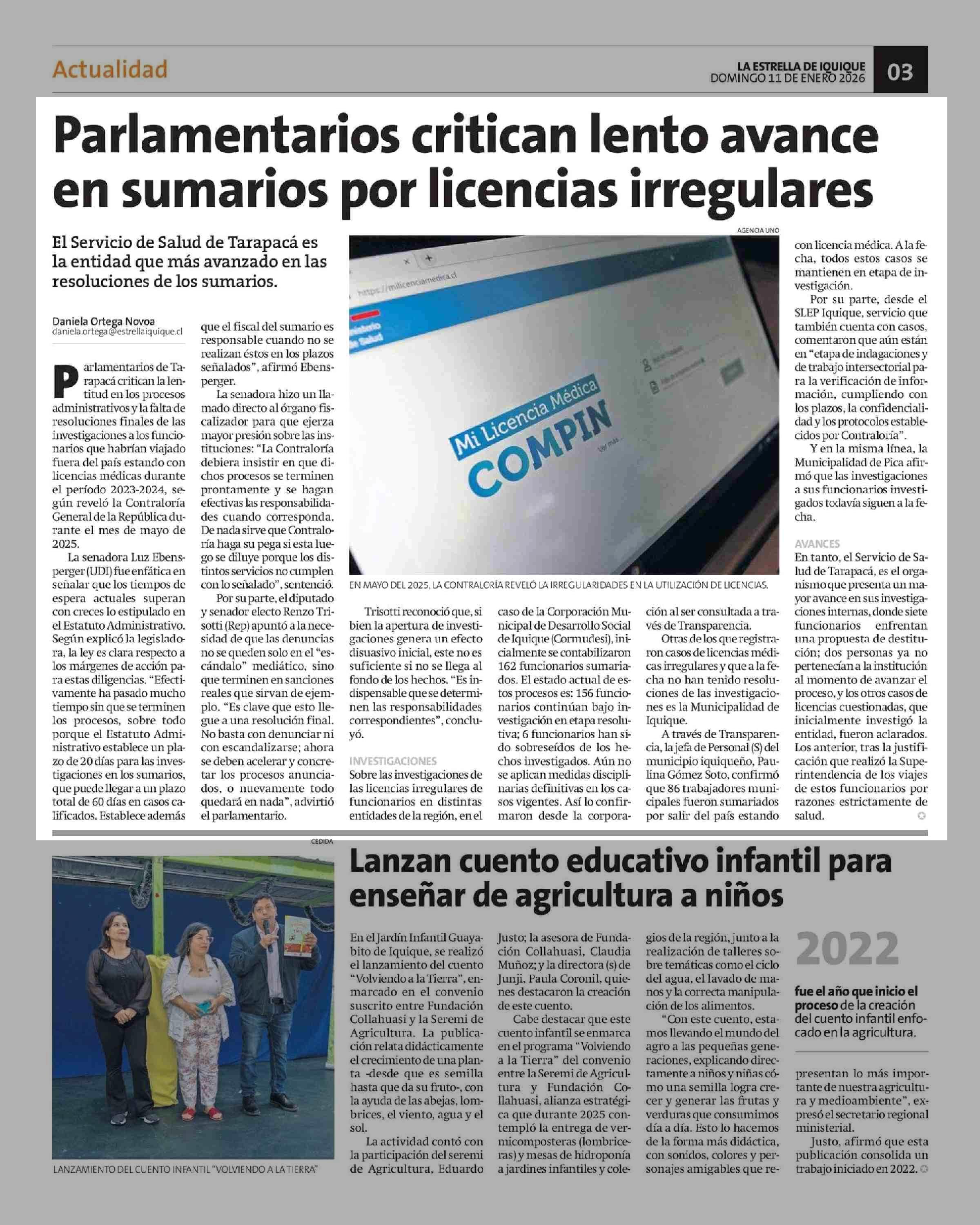 Parlamentarios critican lento avance en sumarios por licencias irregulares 11-01-2026 La Estrella de Iquique |