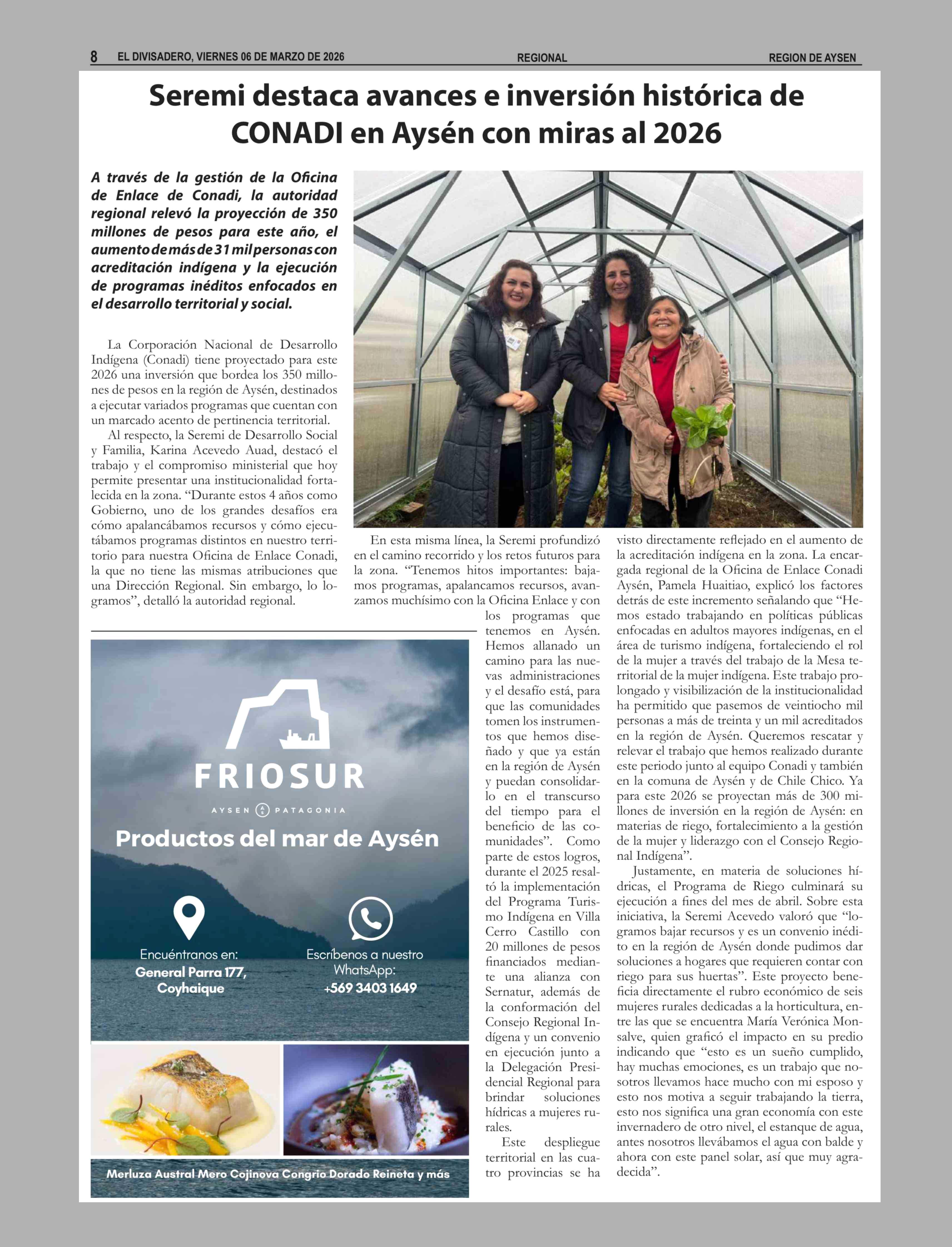 Fecha: 06-03-2026 Sector: Noticia general Región: Región Aysén del General Carlos Ibáñez del Campo