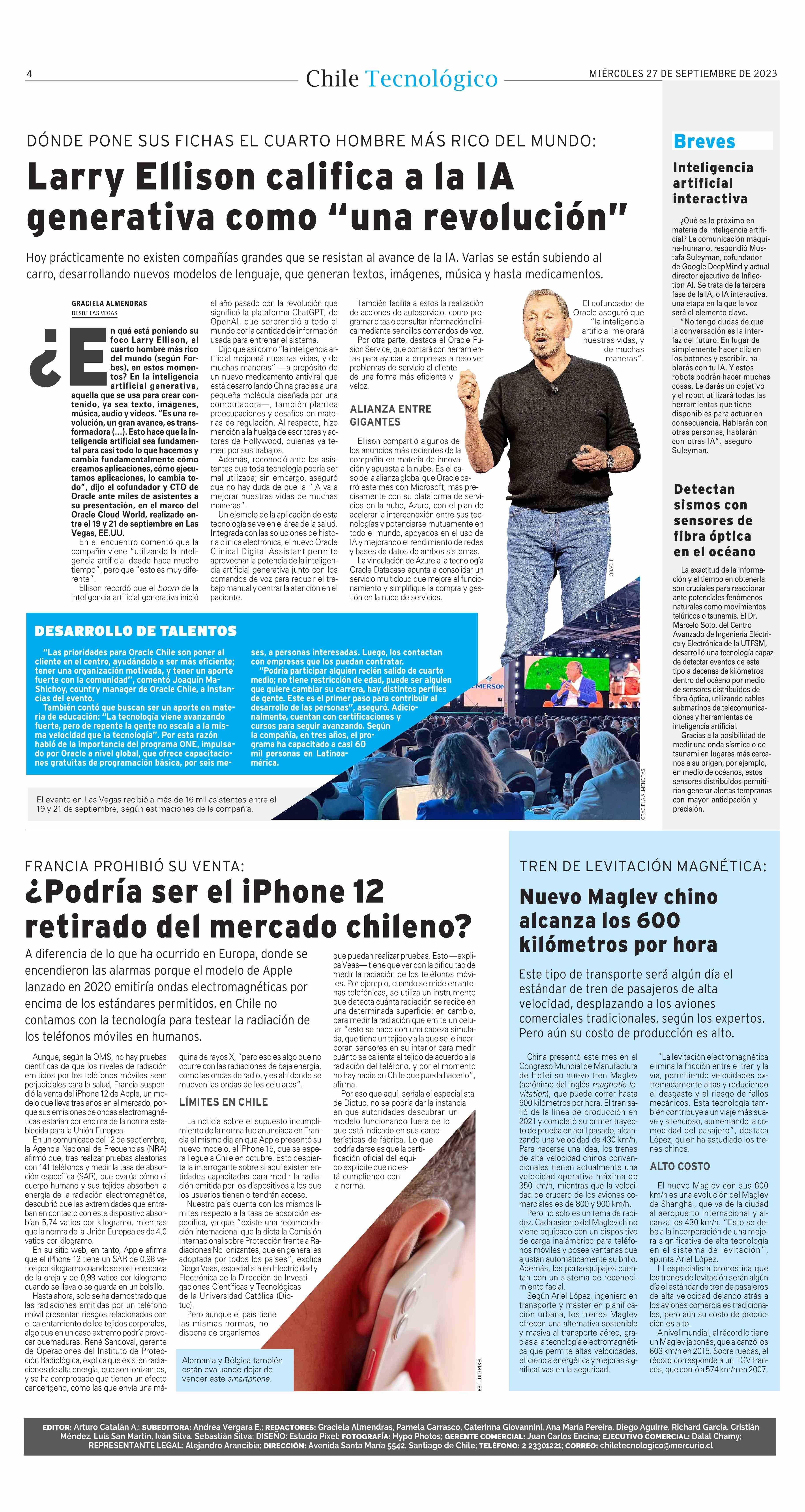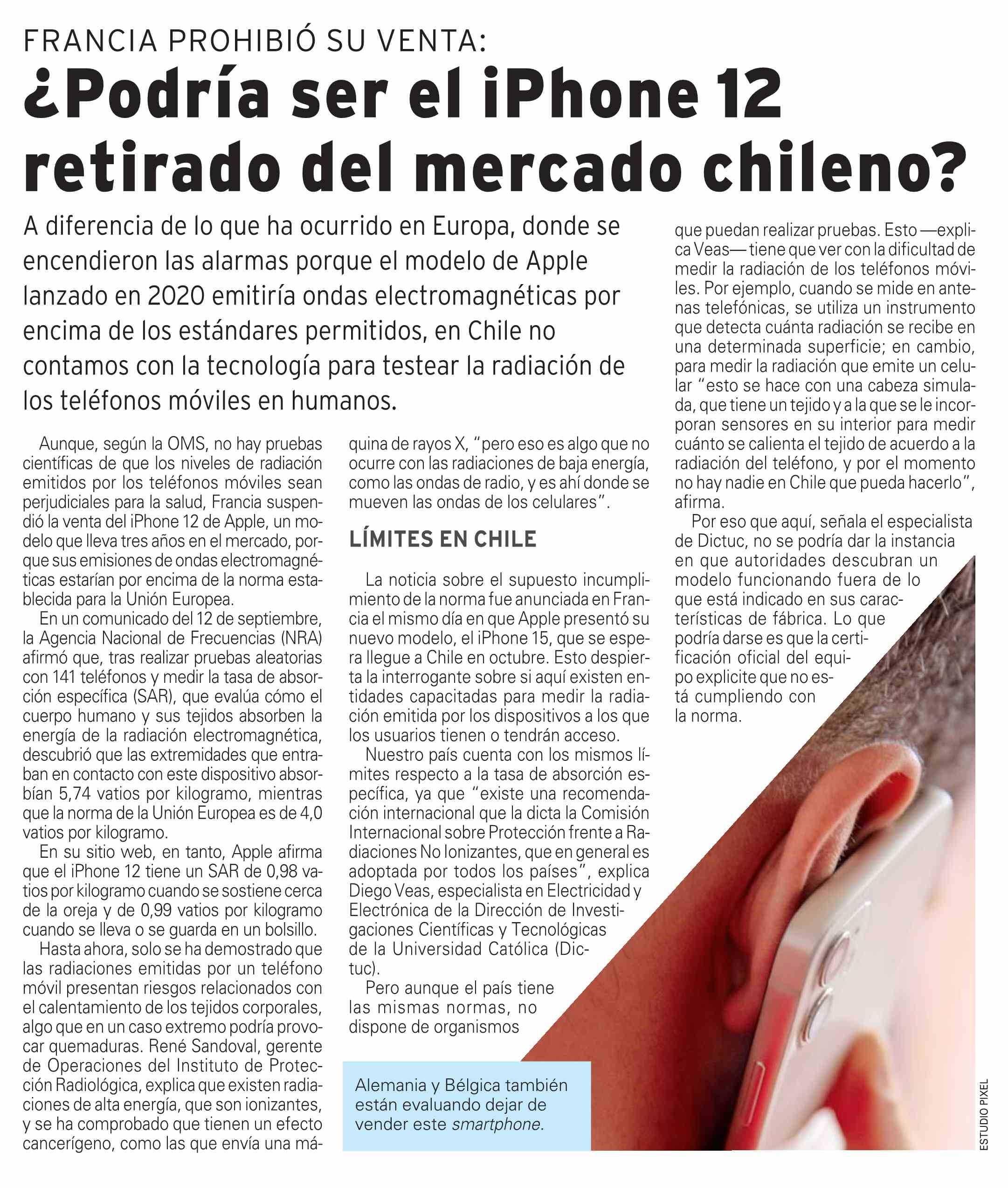 ¿Podría ser el iPhone 12 retirado del mercado chileno? 27-09-2023 El Mercurio |