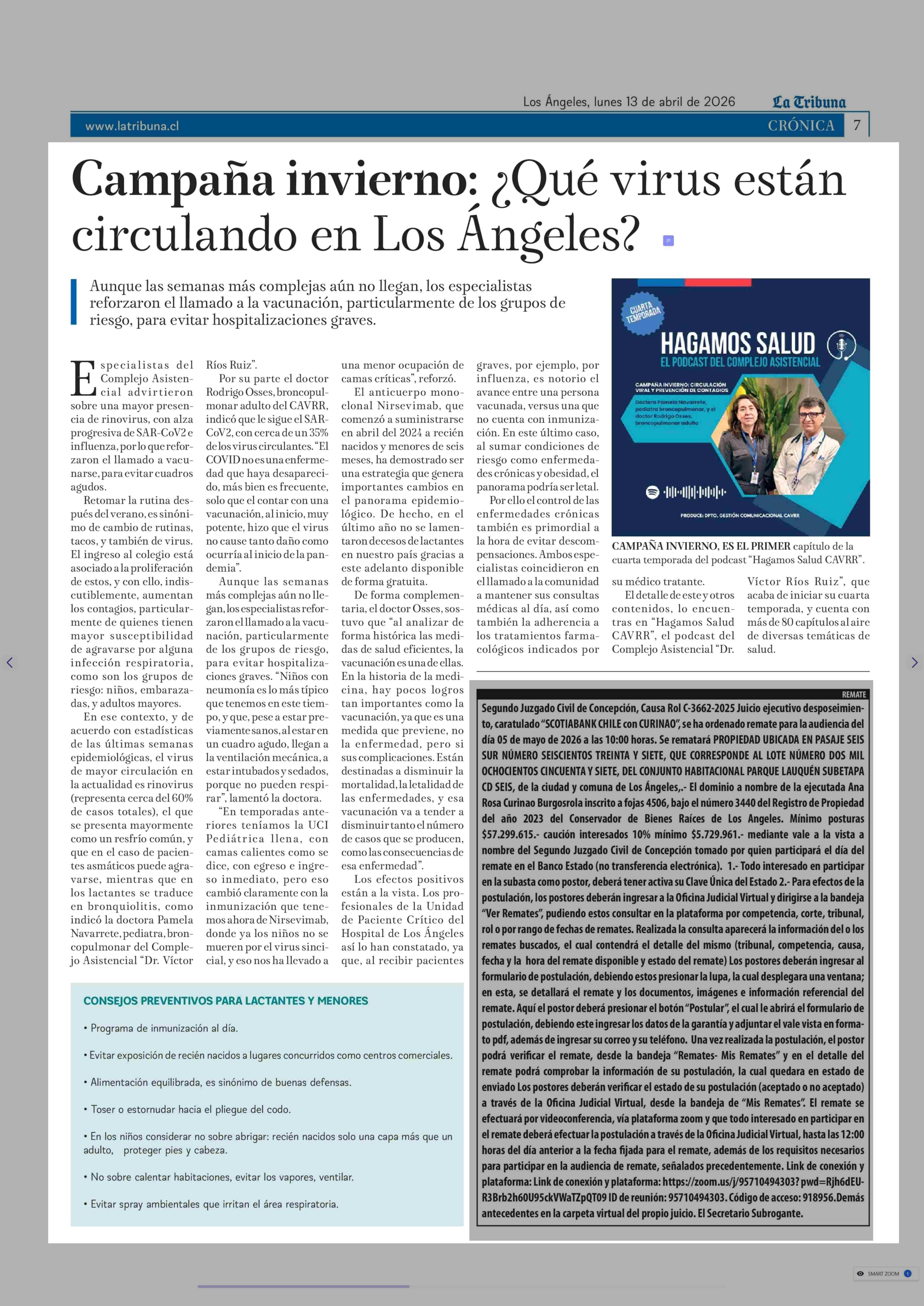 Campaña invierno: ¿Qué virus están circulando en Los Angeles? 13-04-2026 La Tribuna |