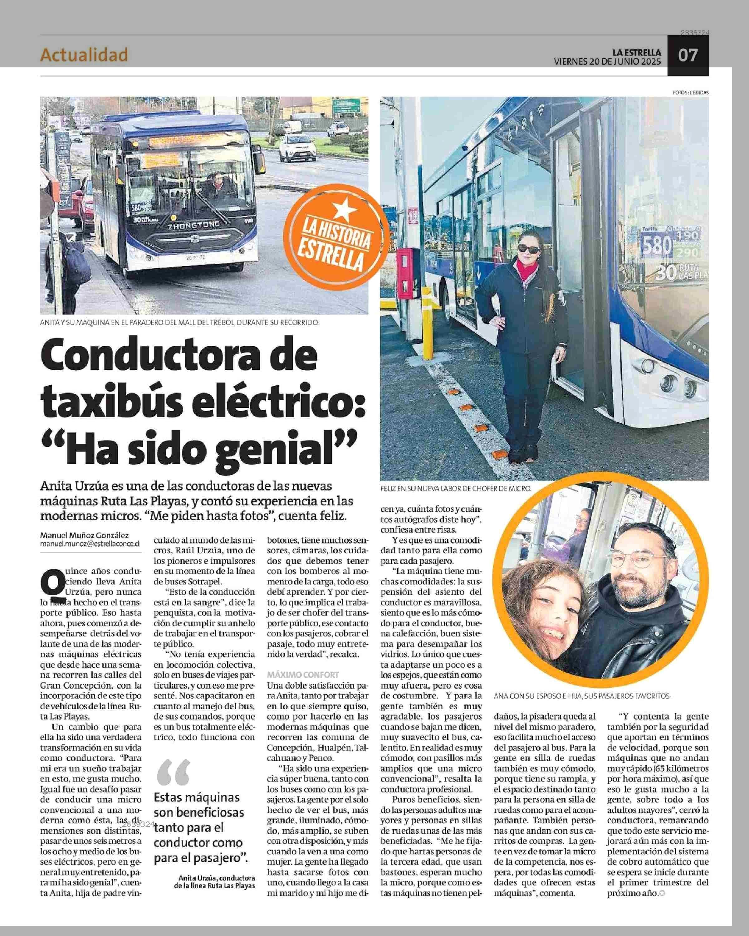 Conductora de taxibús eléctrico: “Ha sido genial” 20-06-2025 La Estrella de Concepción |