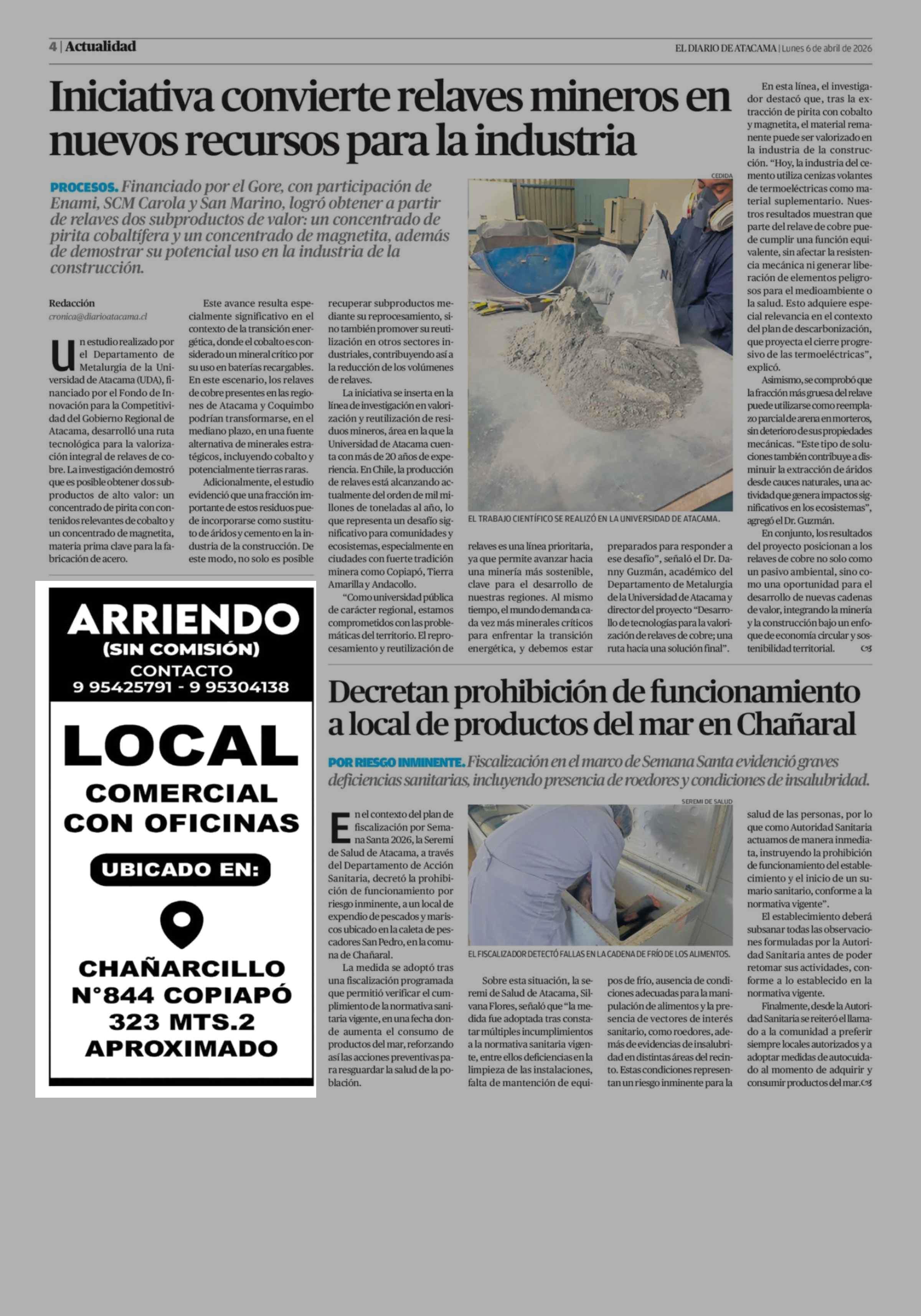 Fuente: El Diario de Atacama (El Diario de Atacama) Página(s): 4