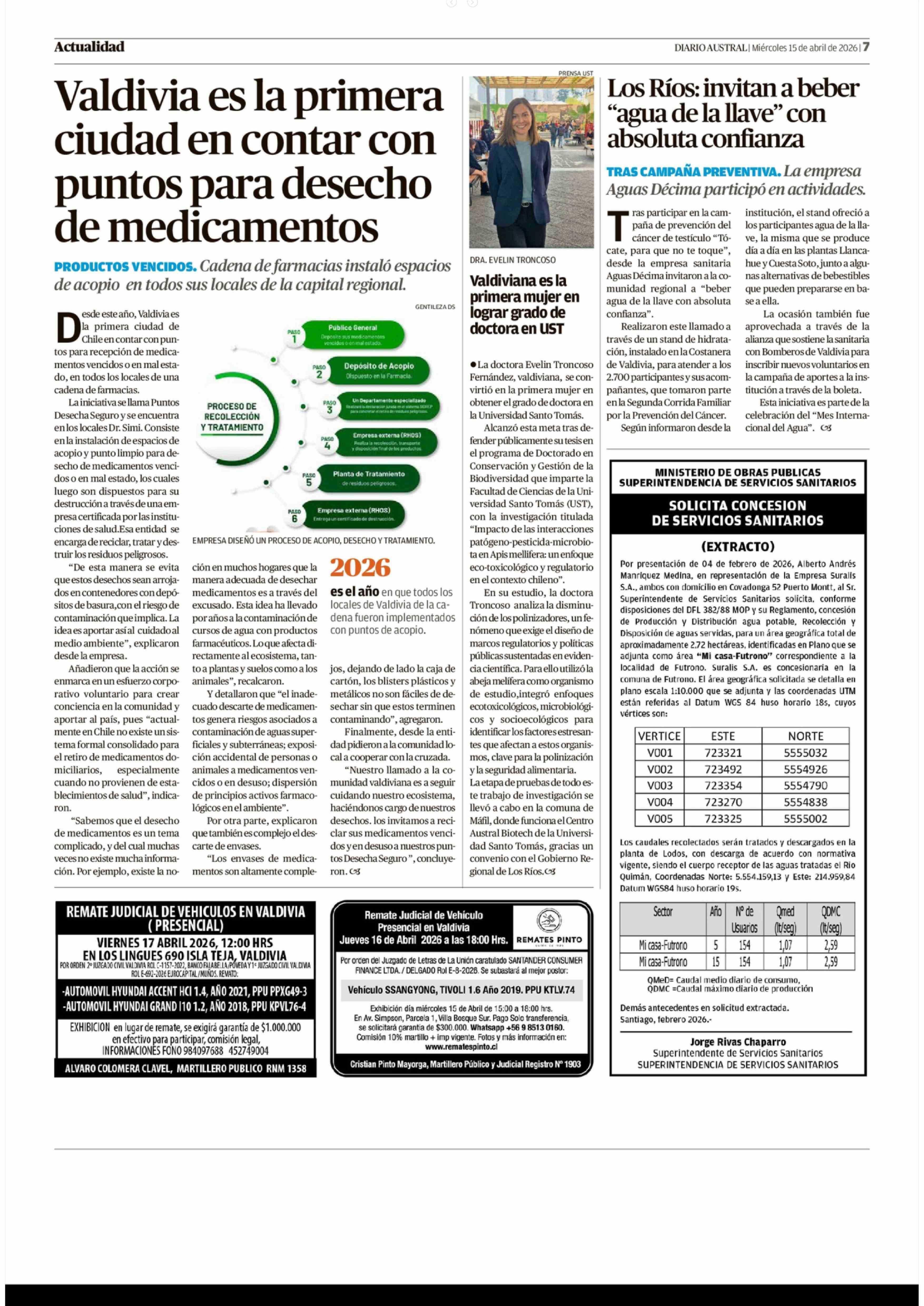 Fuente: Diario Austral Región de Los Ríos (Diario Austral Región de Los Ríos) Página(s): 7