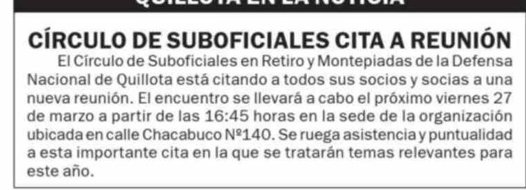 | Título: | CÍRCULO DE SUBOFICIALES CITA A REUNIÓN |