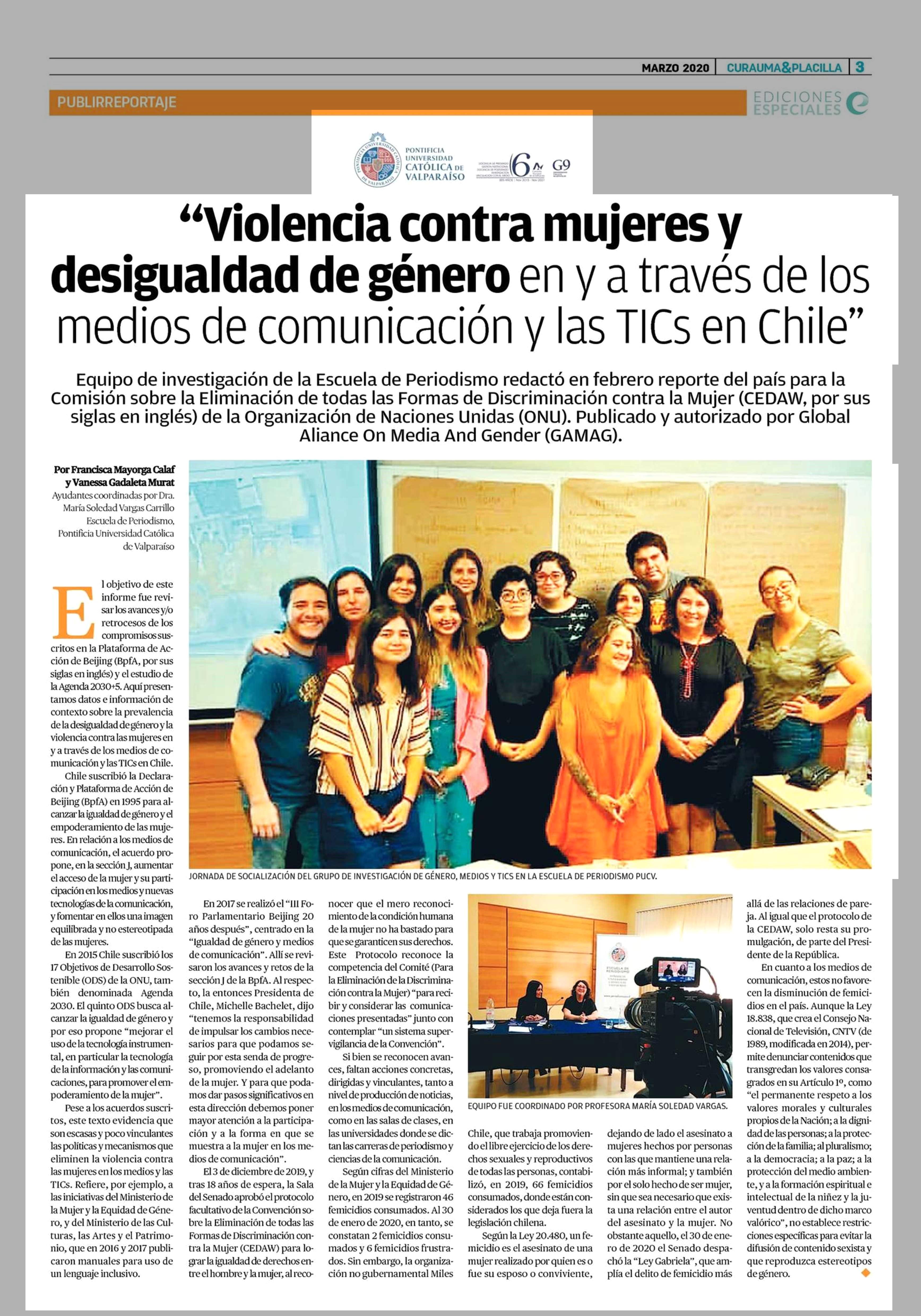 “Violencia contra mujeres y desigualdad de genero en y a traves de los medios de comunicación y las TICs en Chile” 21-03-2020 El Mercurio de Valparaíso |