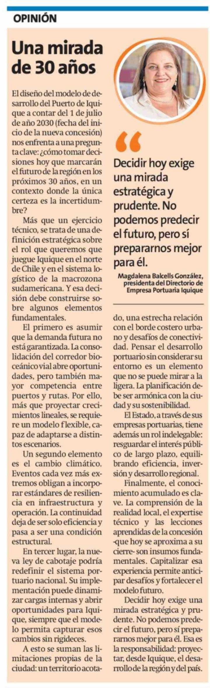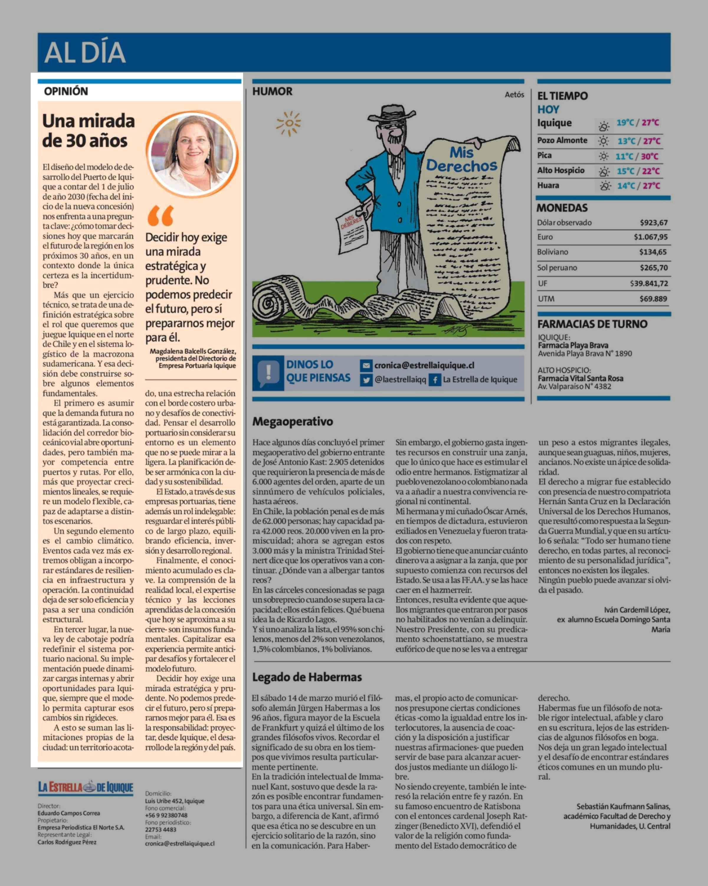 Columnas de Opinión: Una mirada de 30 años 23-03-2026 La Estrella de Iquique |