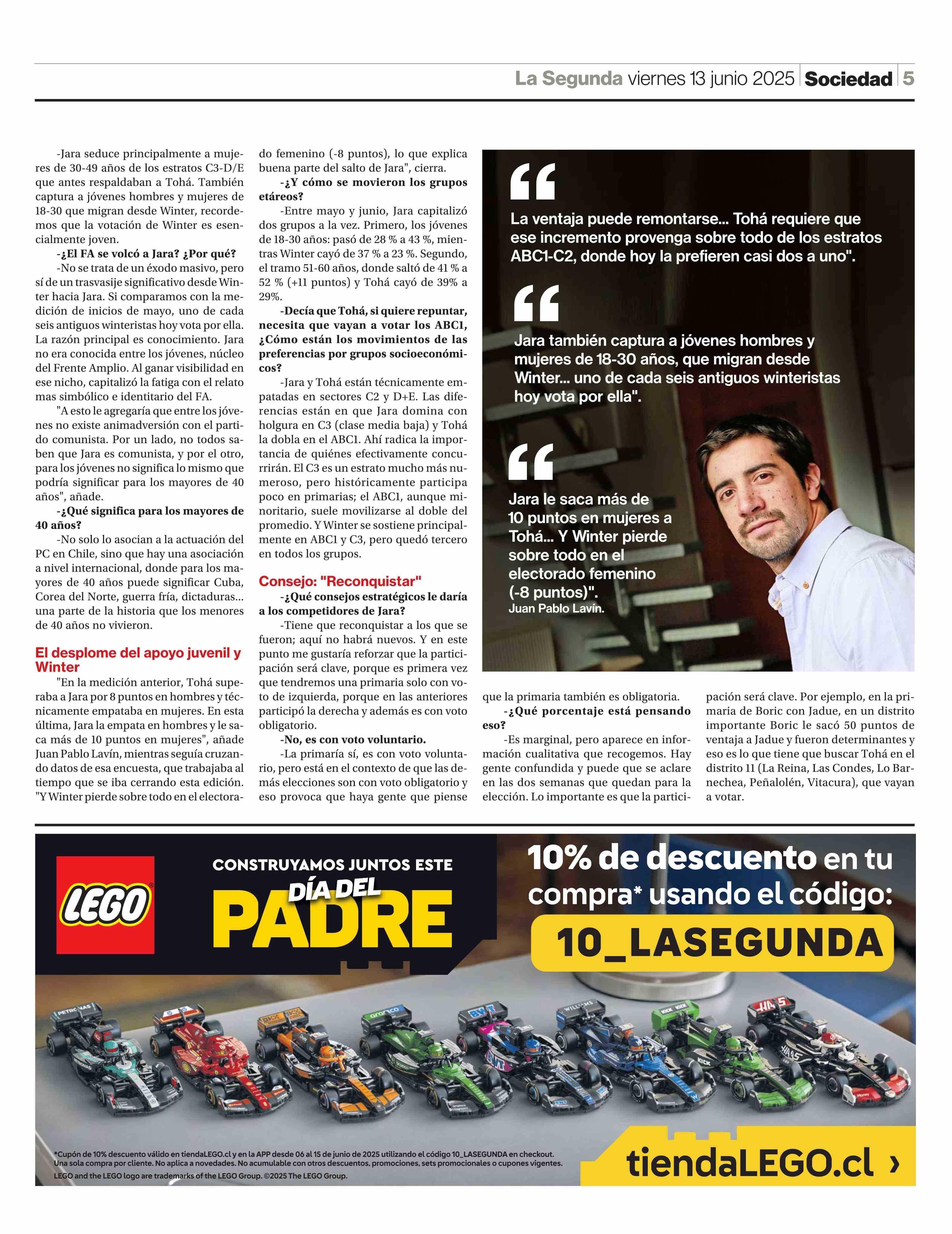 Jara le saca 6 puntos de ventaja a Tohá entre votantes de primaria 13-06-2025 La Segunda |