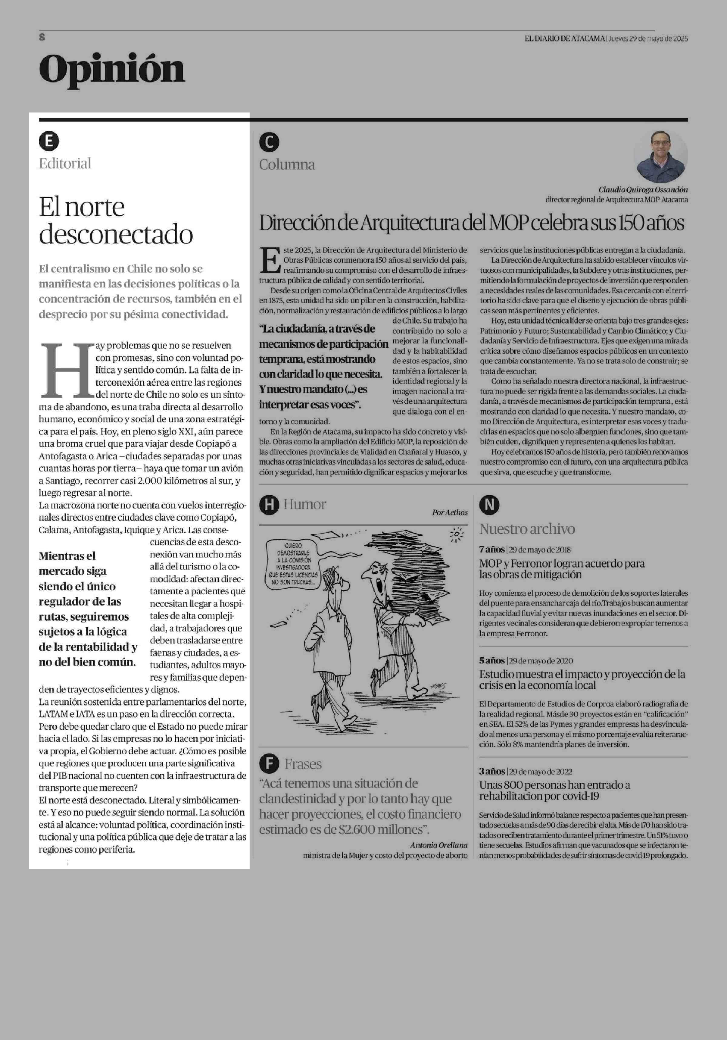 Editorial: El norte desconectado 29-05-2025 El Diario de Atacama |