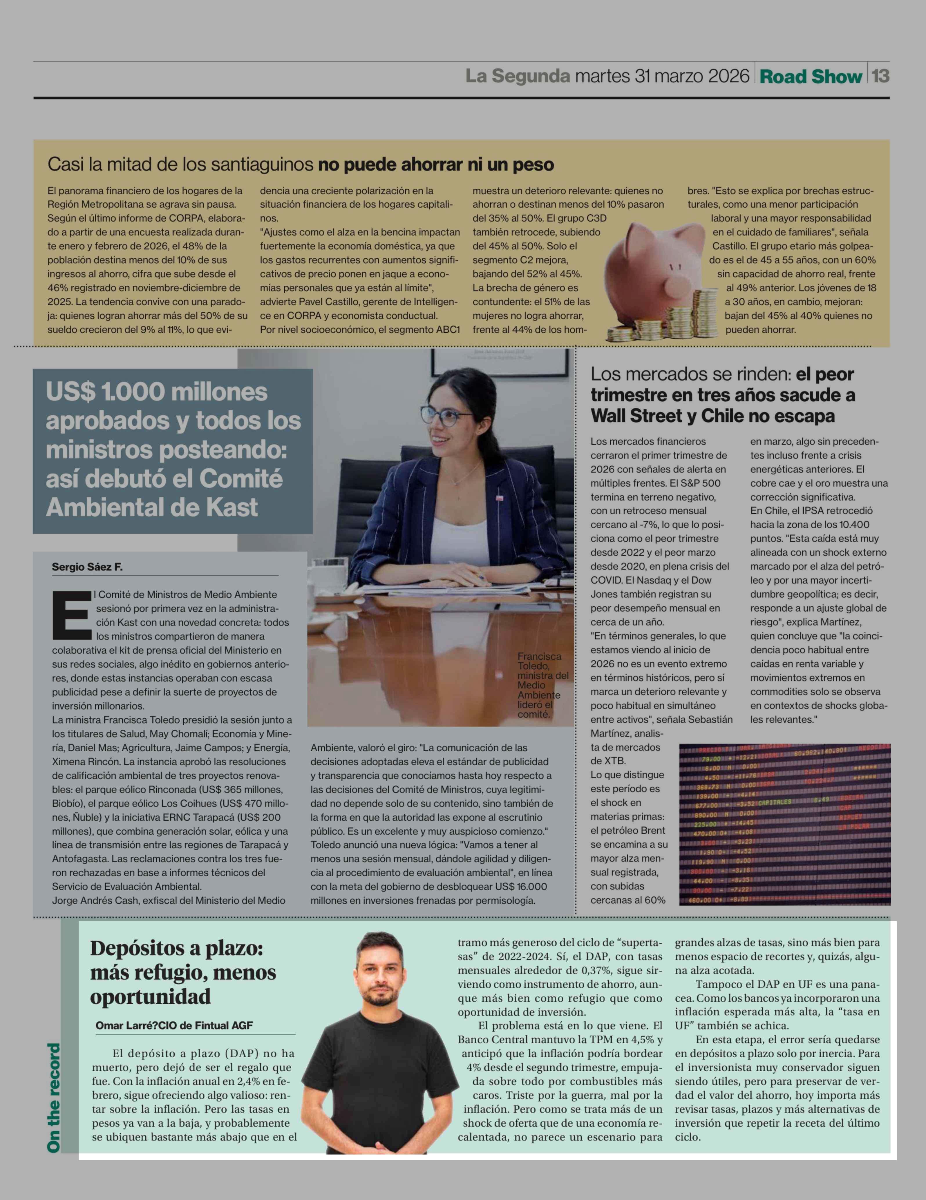 Columnas de Opinión: Depósitos a plazo: más refugio, menos oportunidad 31-03-2026 La Segunda |