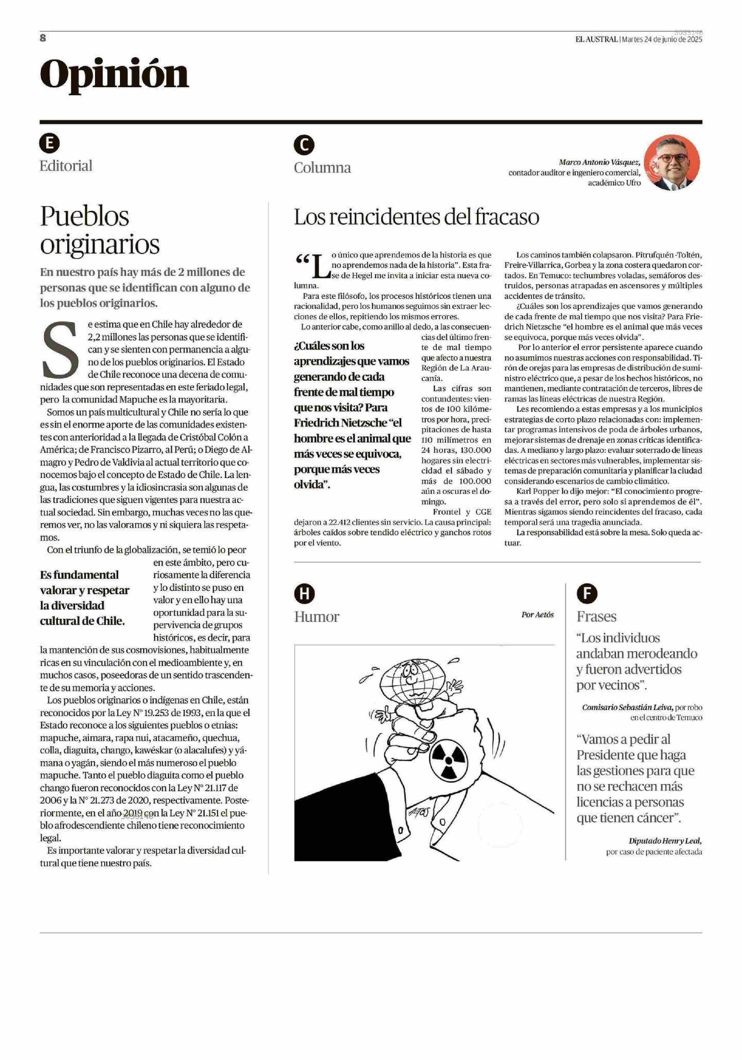 Columnas de Opinión: Los reincidentes del fracaso 24-06-2025 El Austral de la Araucanía |