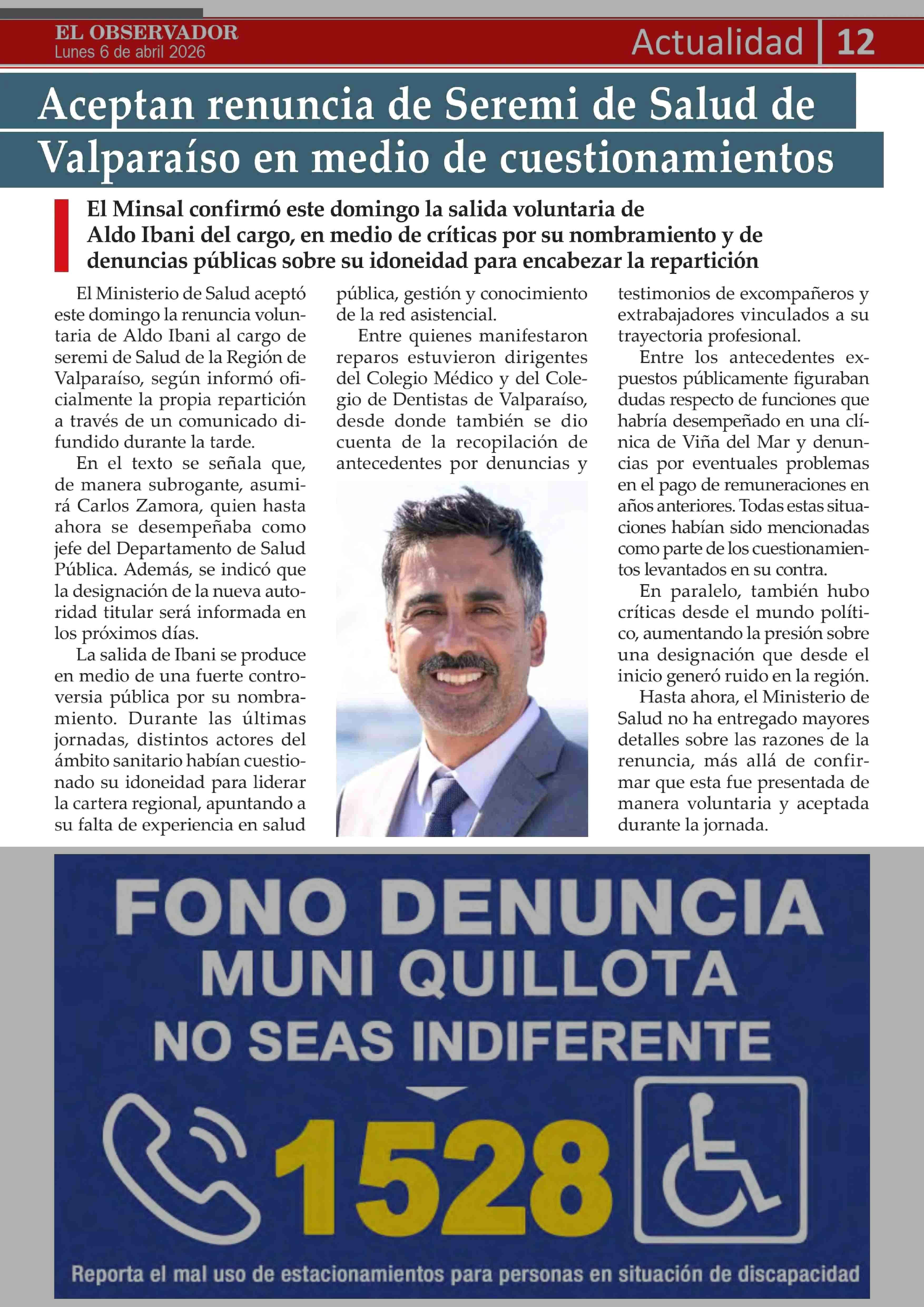 Aceptan renuncia de Seremi de Salud de Valparaiso en medio de cuestionamientos 06-04-2026 El Observador Vespertino |