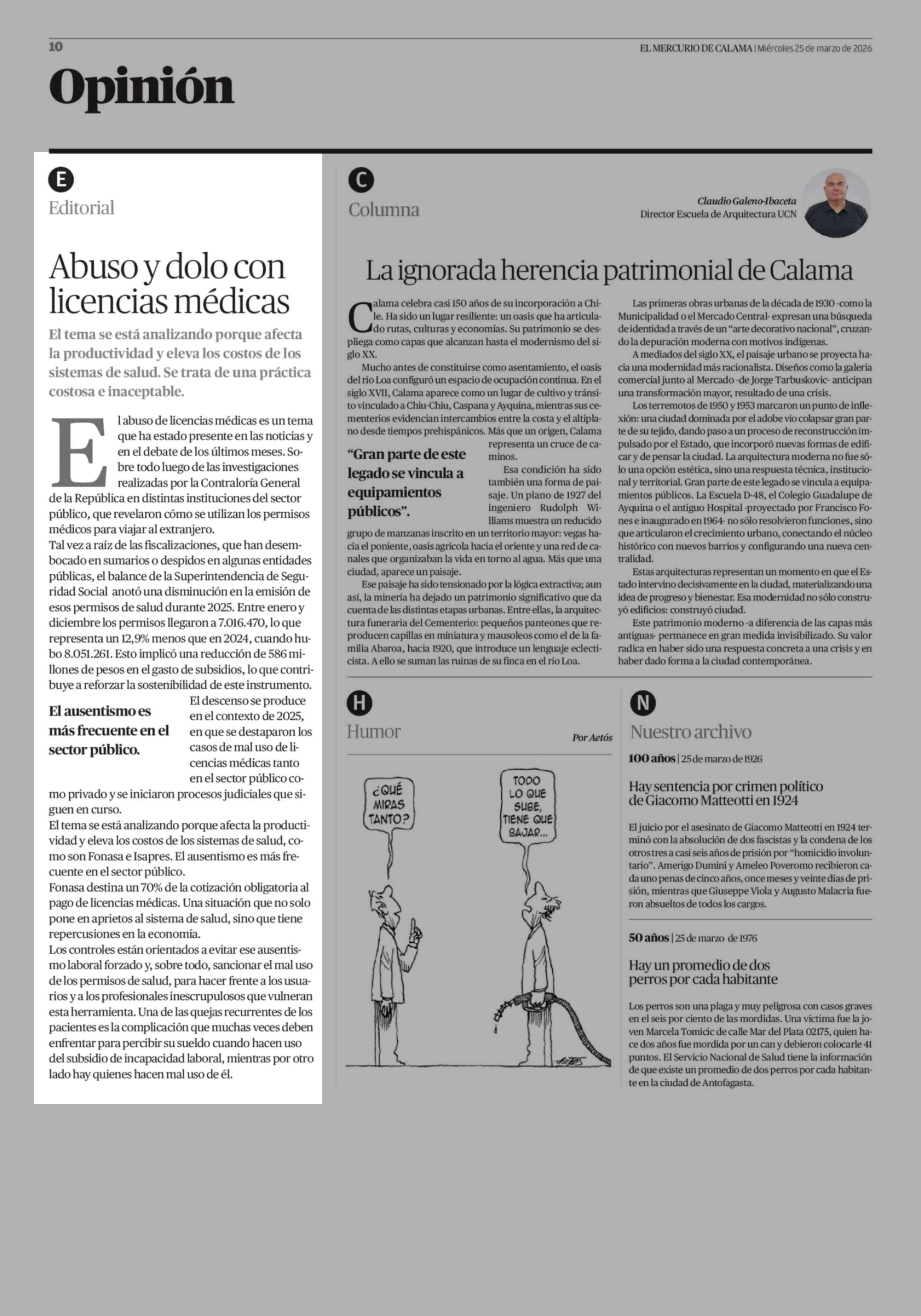 Editorial: Abuso y dolo con licencias médicas 25-03-2026 El Mercurio de Calama |