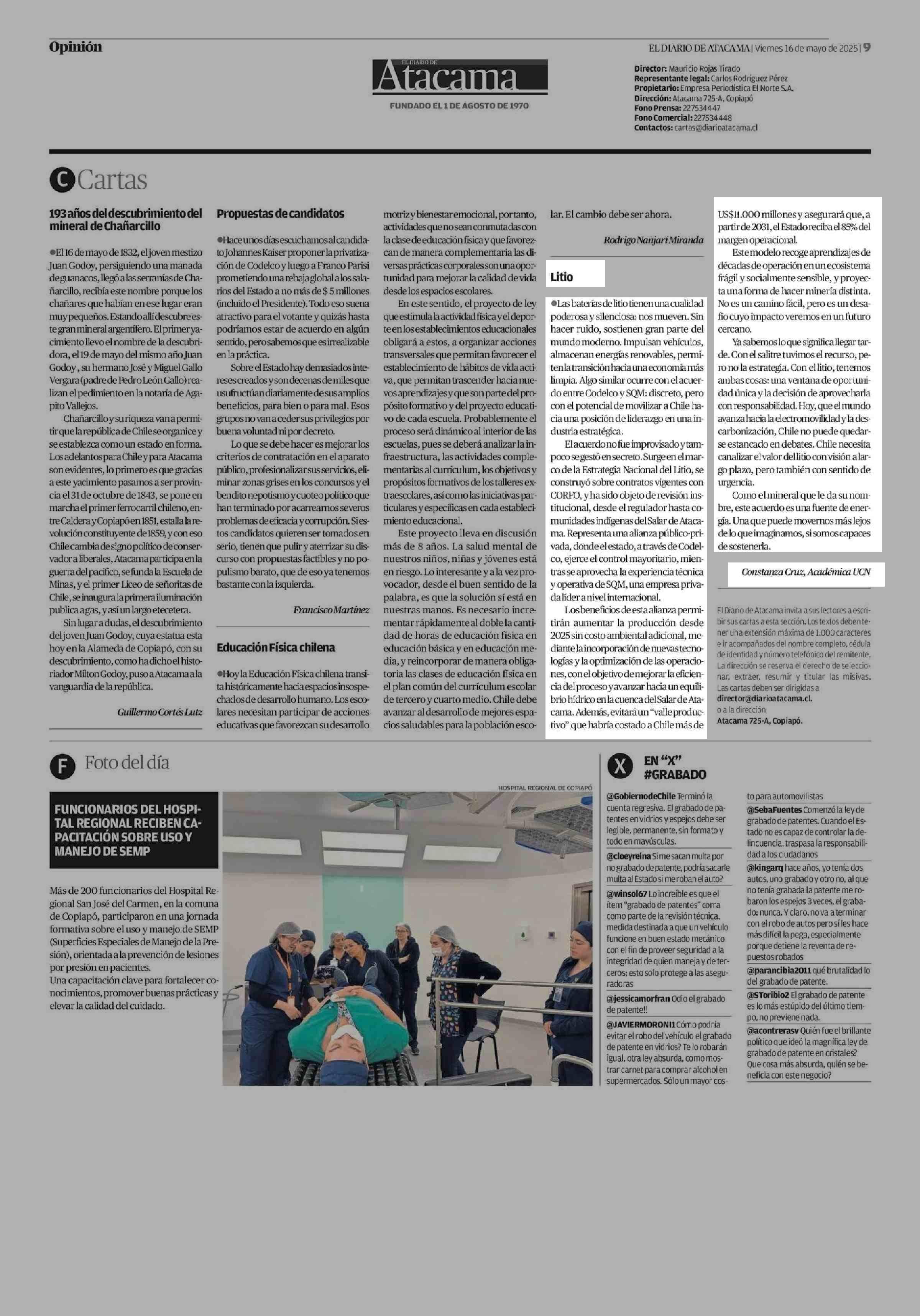 Litio 16-05-2025 El Diario de Atacama |