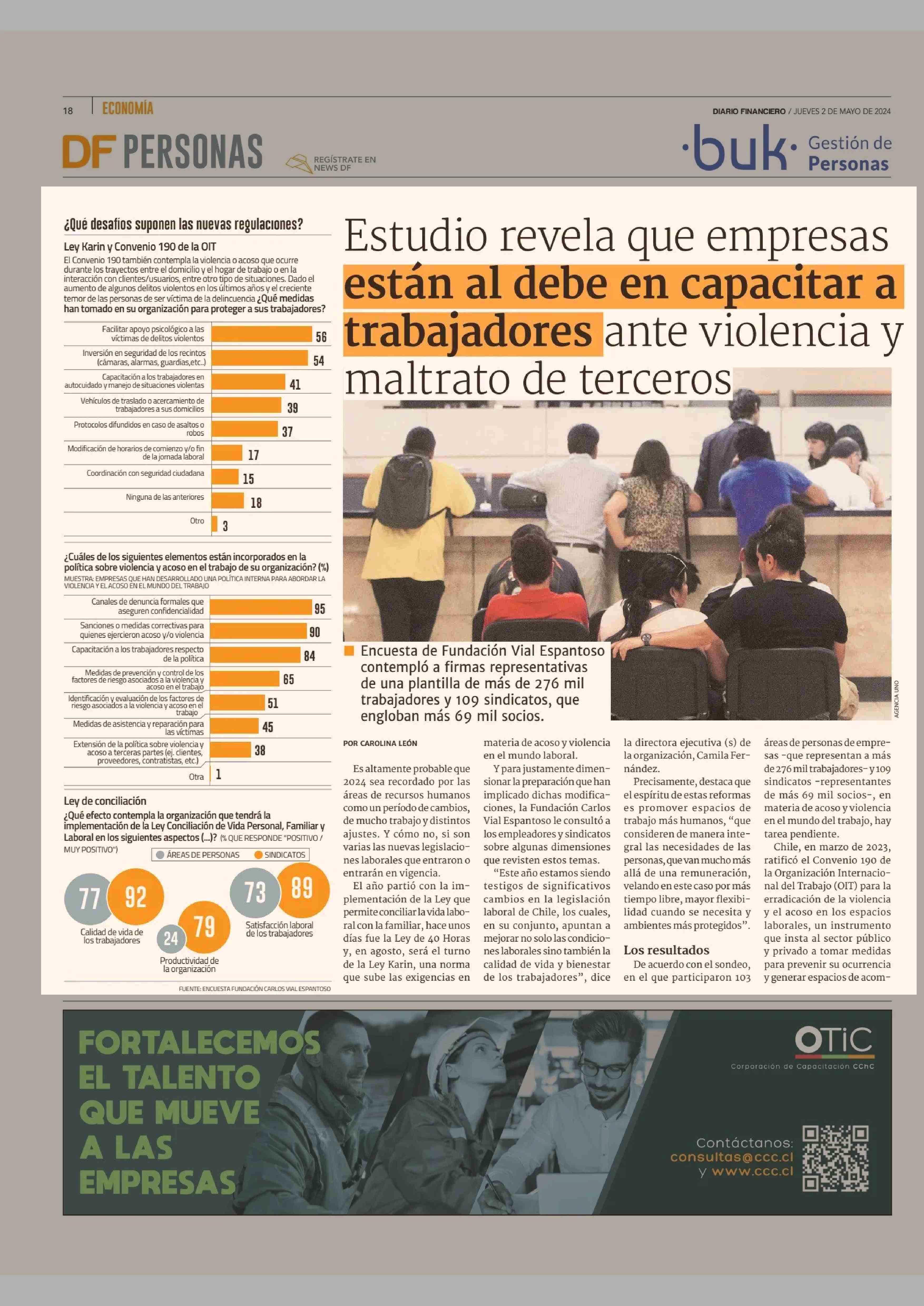 Estudio revela que empresas están al debe en capacitar a trabajadores ante violencia y maltrato de terceros 02-05-2024 Diario Financiero |