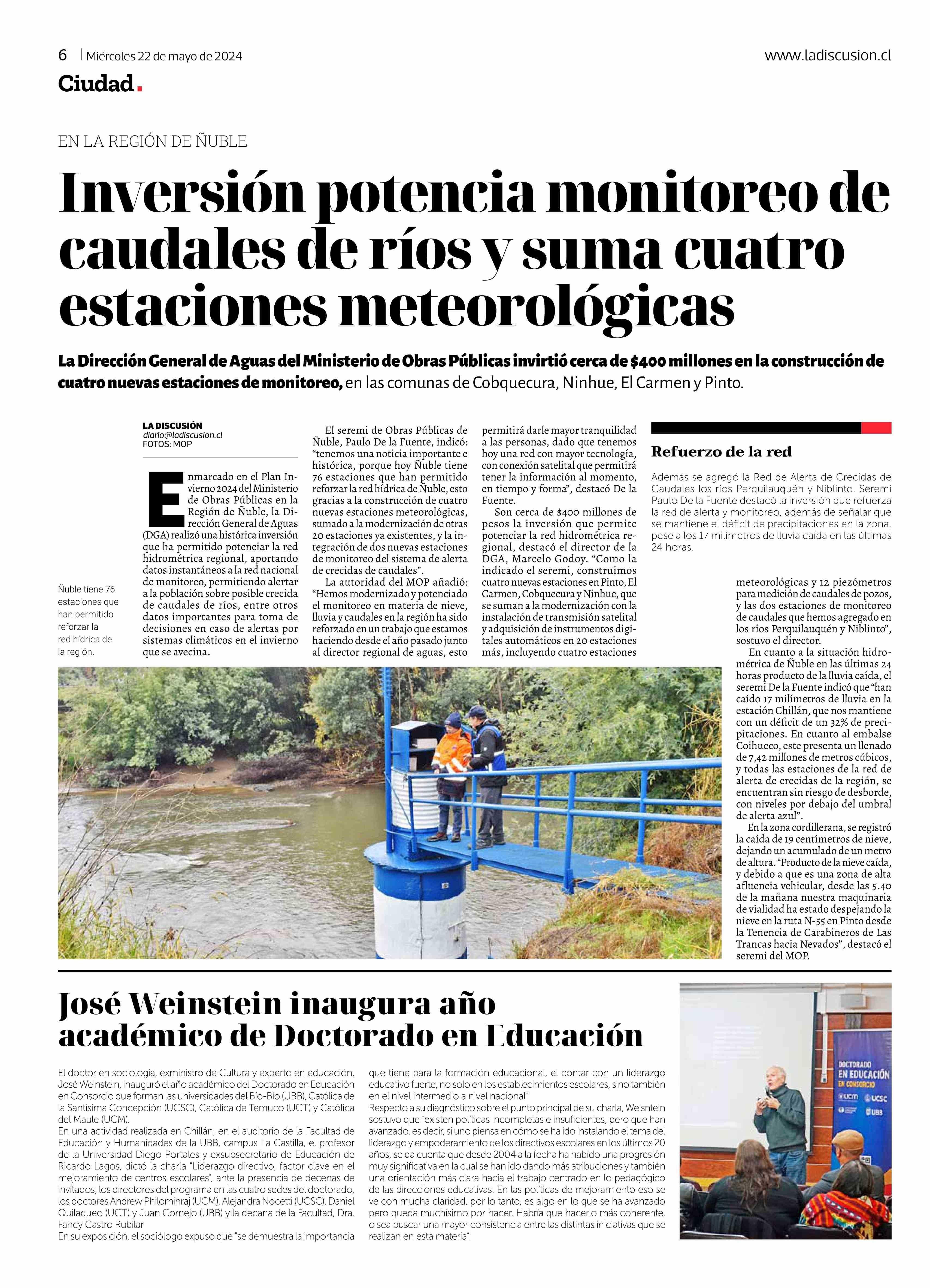 José Weinstein inaugura año académico de Doctorado en Educación 22-05-2024 La Discusión |