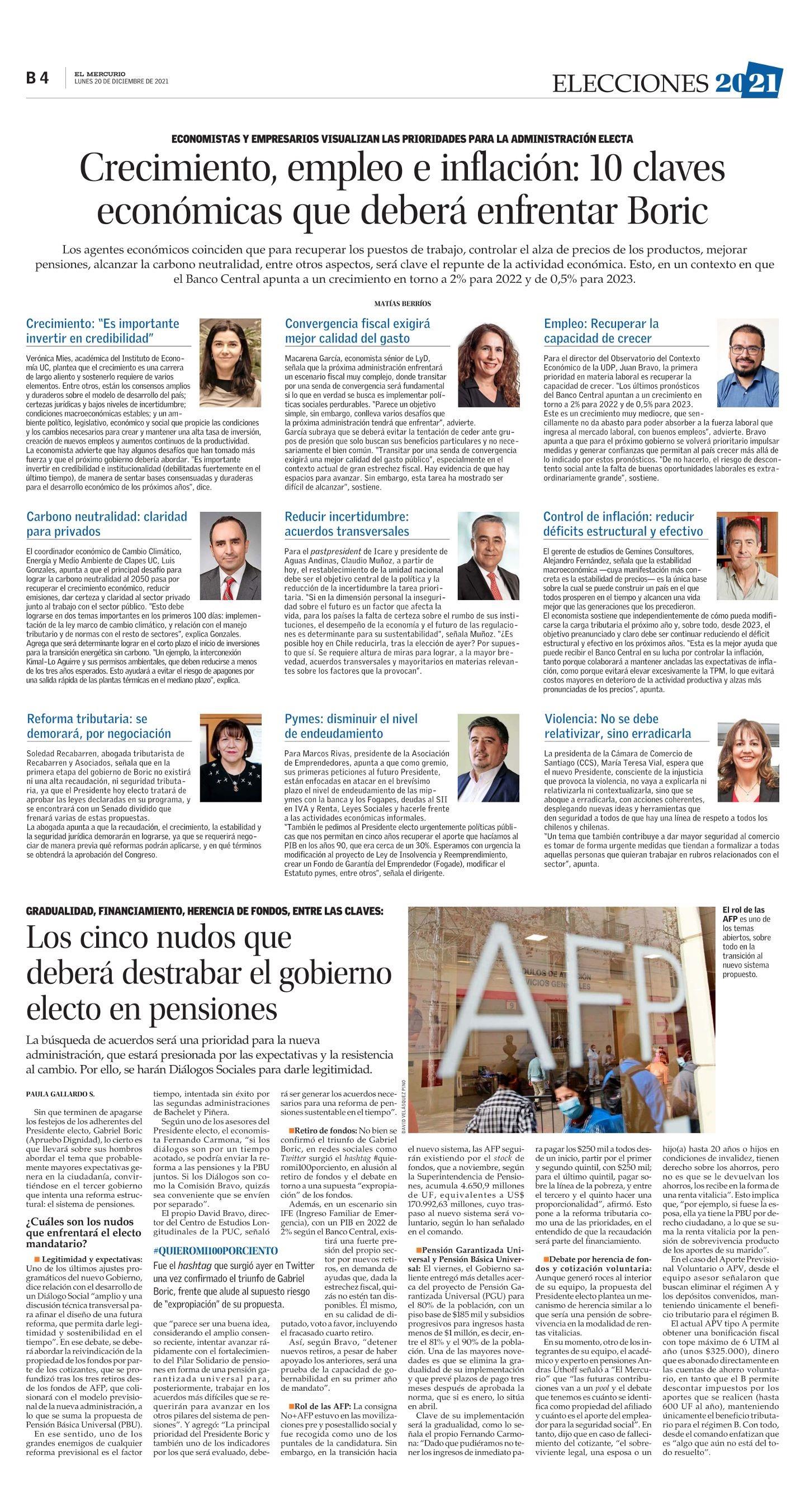 Crecimiento, empleo e inflación: 10 claves económicas que deberá enfrentar Boric 20-12-2021 El Mercurio |
