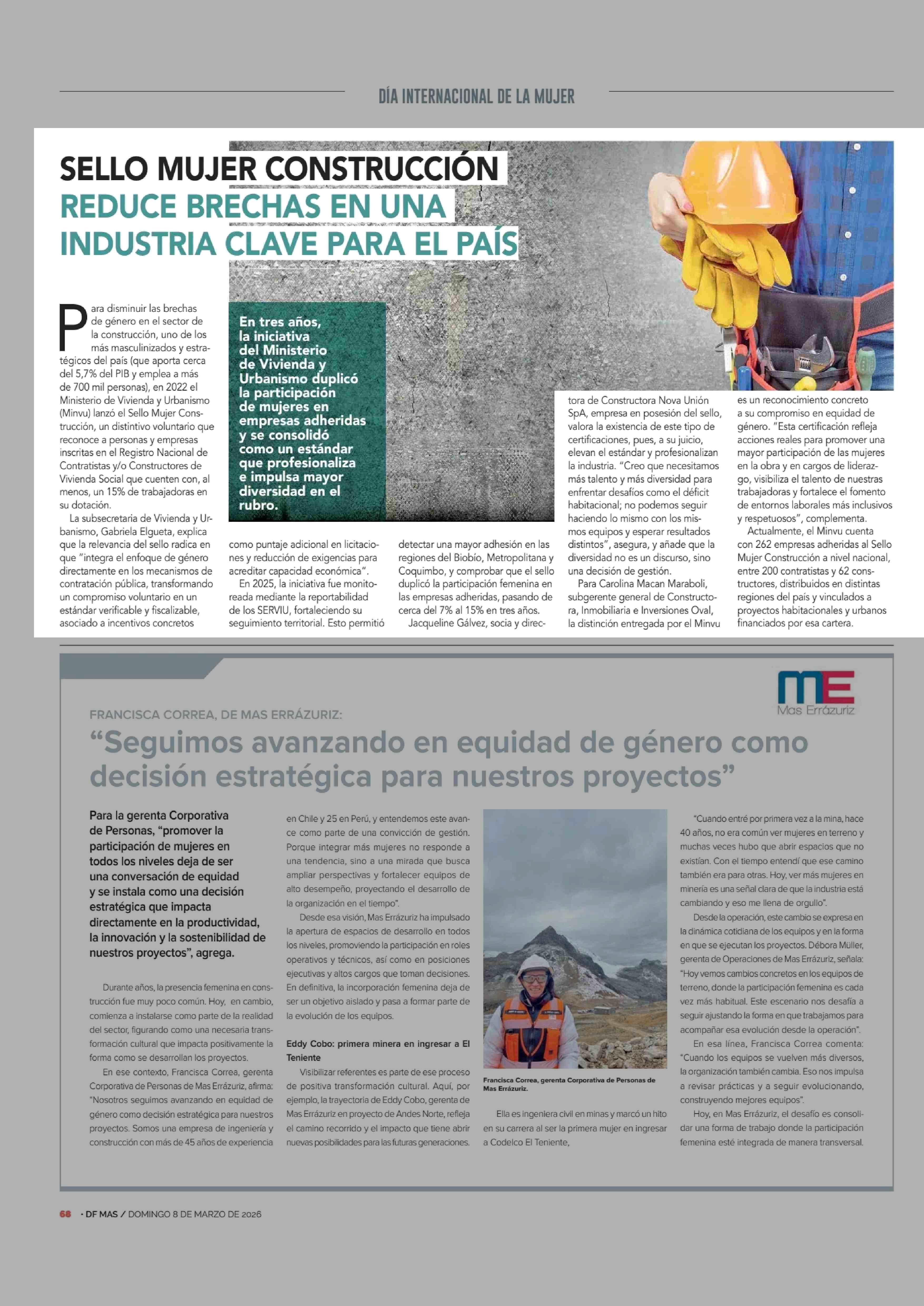 SELLO MUJER CONSTRUCCIÓN Al CI A A UAT A INDUSTRIA CLAVE PARA EL PAÍS 08-03-2026 Diario Financiero |