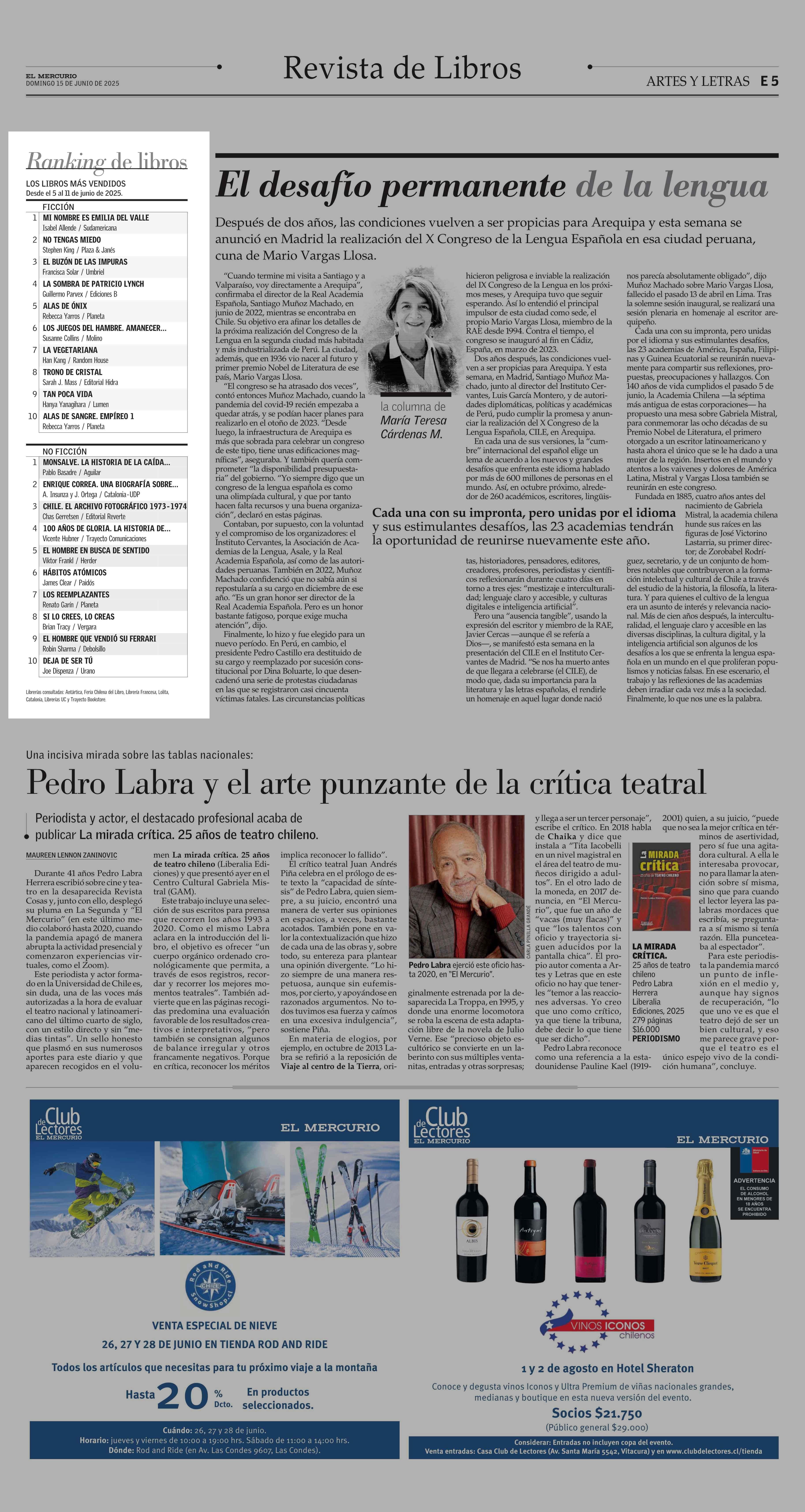 Ranking de libros 15-06-2025 El Mercurio |