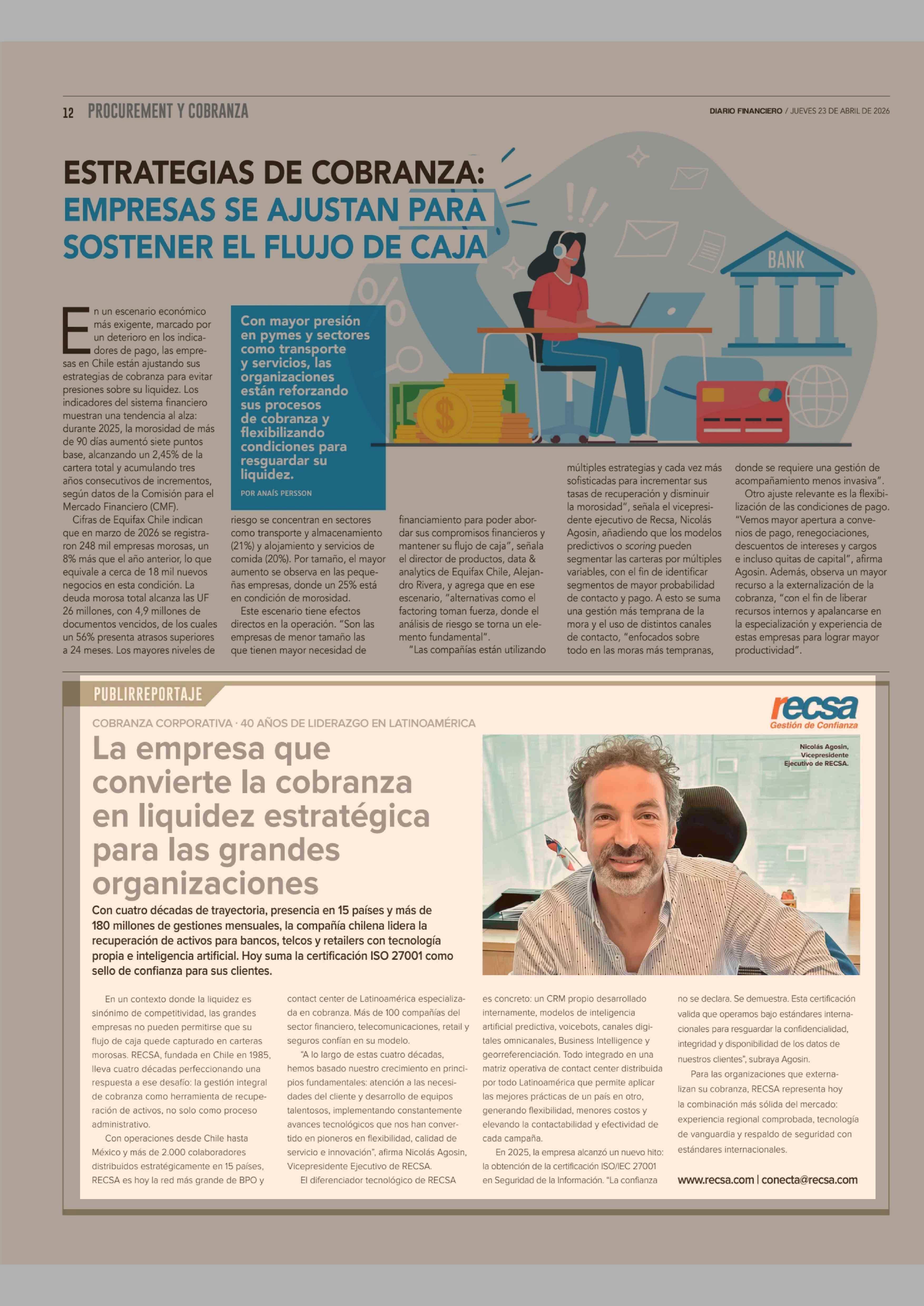 La empresa que convierte la cobranza en liquidez estratégica para las grandes organizaciones 23-04-2026 Diario Financiero |
