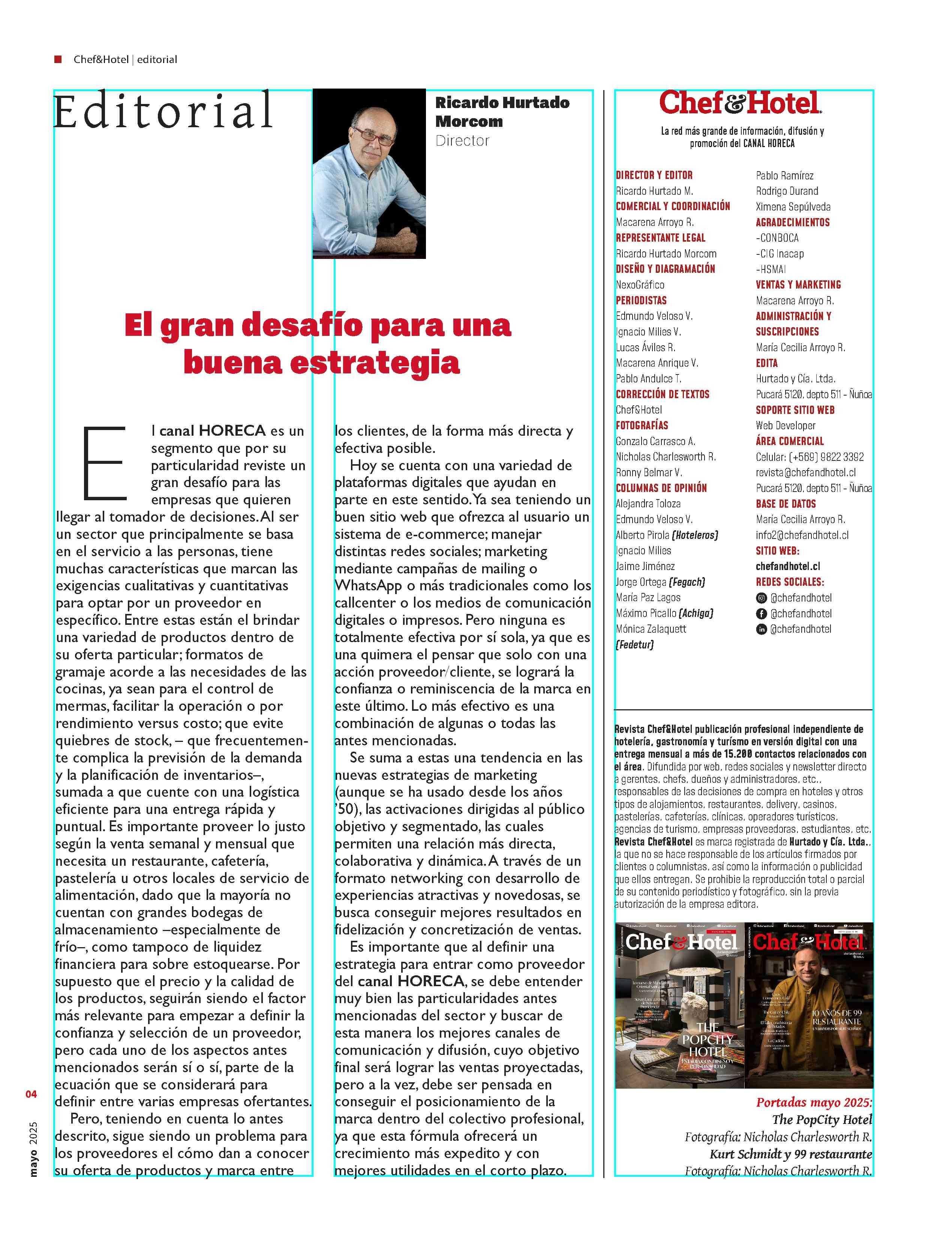 EDITORIAL: El gran des4fo para una buena e rategia 31-05-2025 Revista Chef & Hotel |