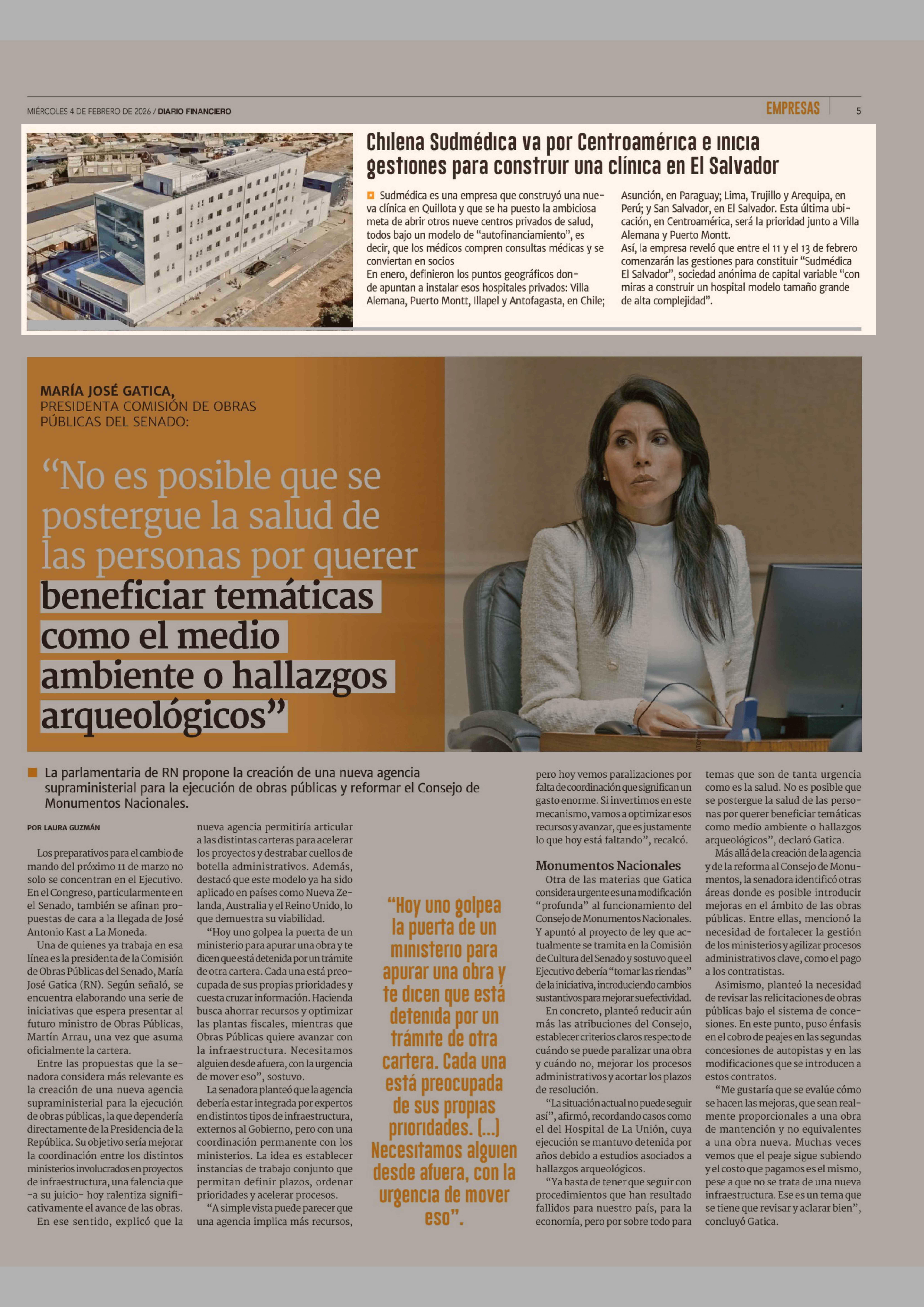 Chilena Sudmédica va por Centroamérica e inicia gestiones para construir una clínica en El Salvador 04-02-2026 Diario Financiero |