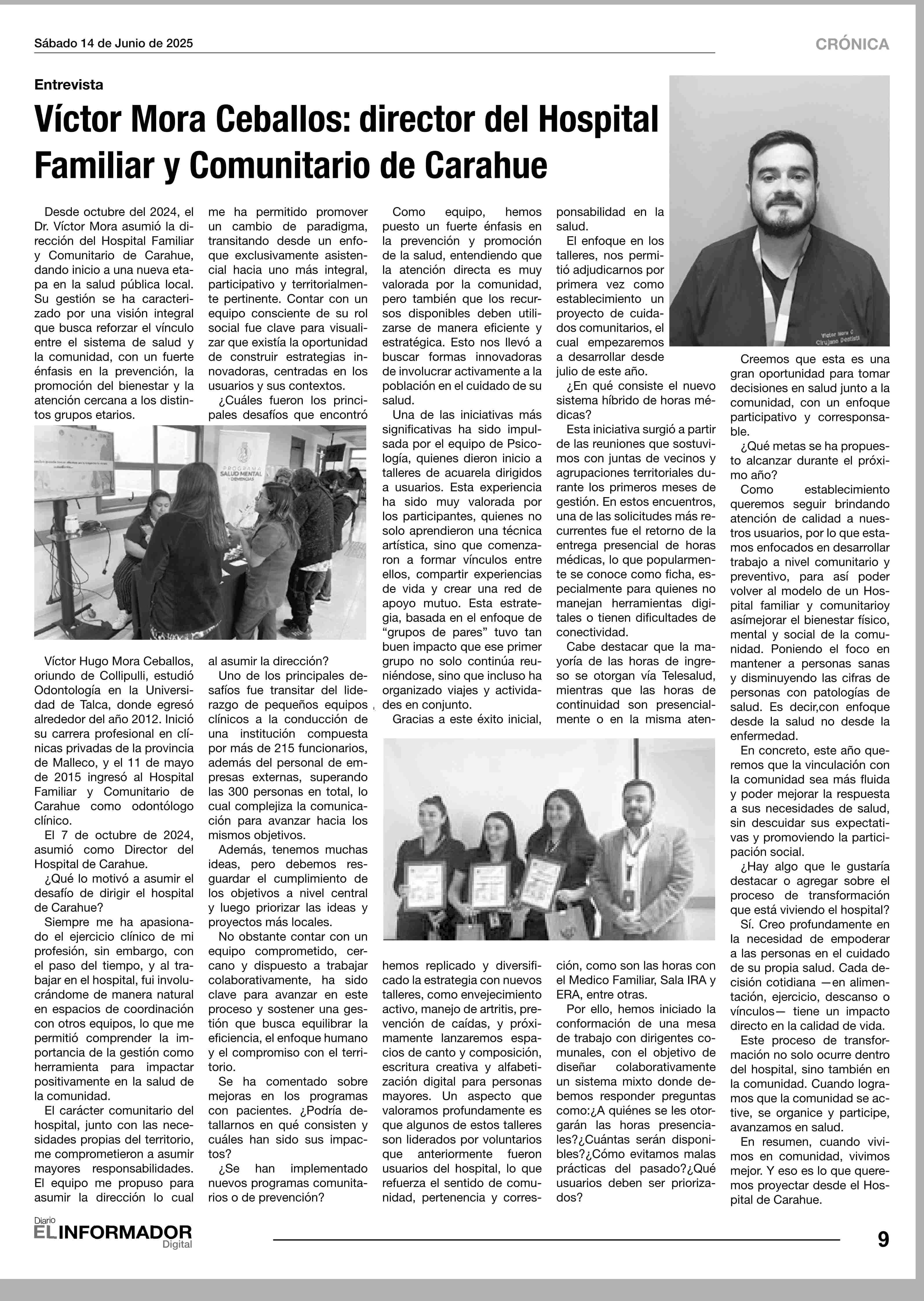 Víctor Mora Ceballos: director del Hospital Familiar y Comunitario de Carahue 14-06-2025 El Informador |