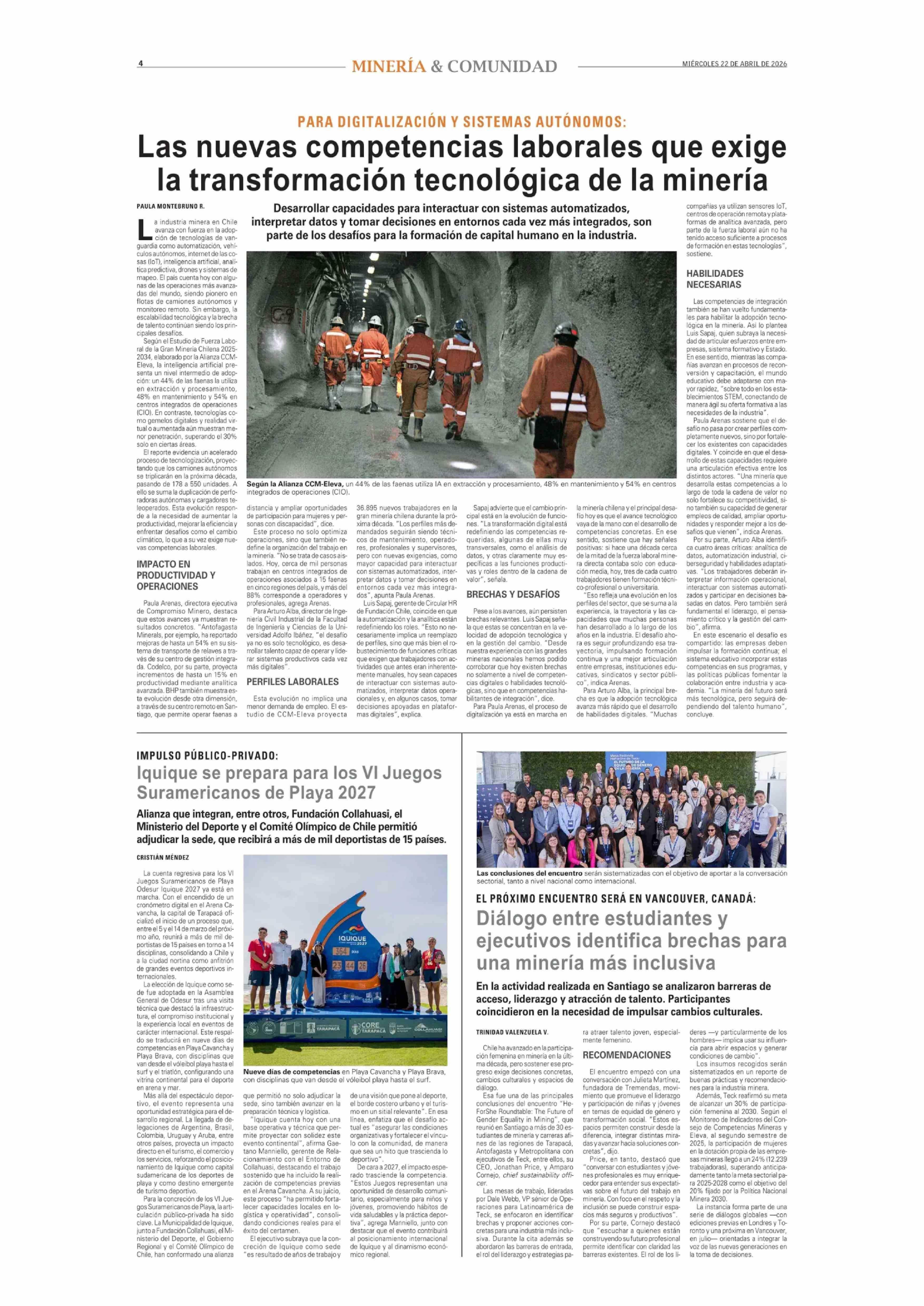 Fuente: El Mercurio (El Mercurio - Minería y Comunidad) Página(s): 4
