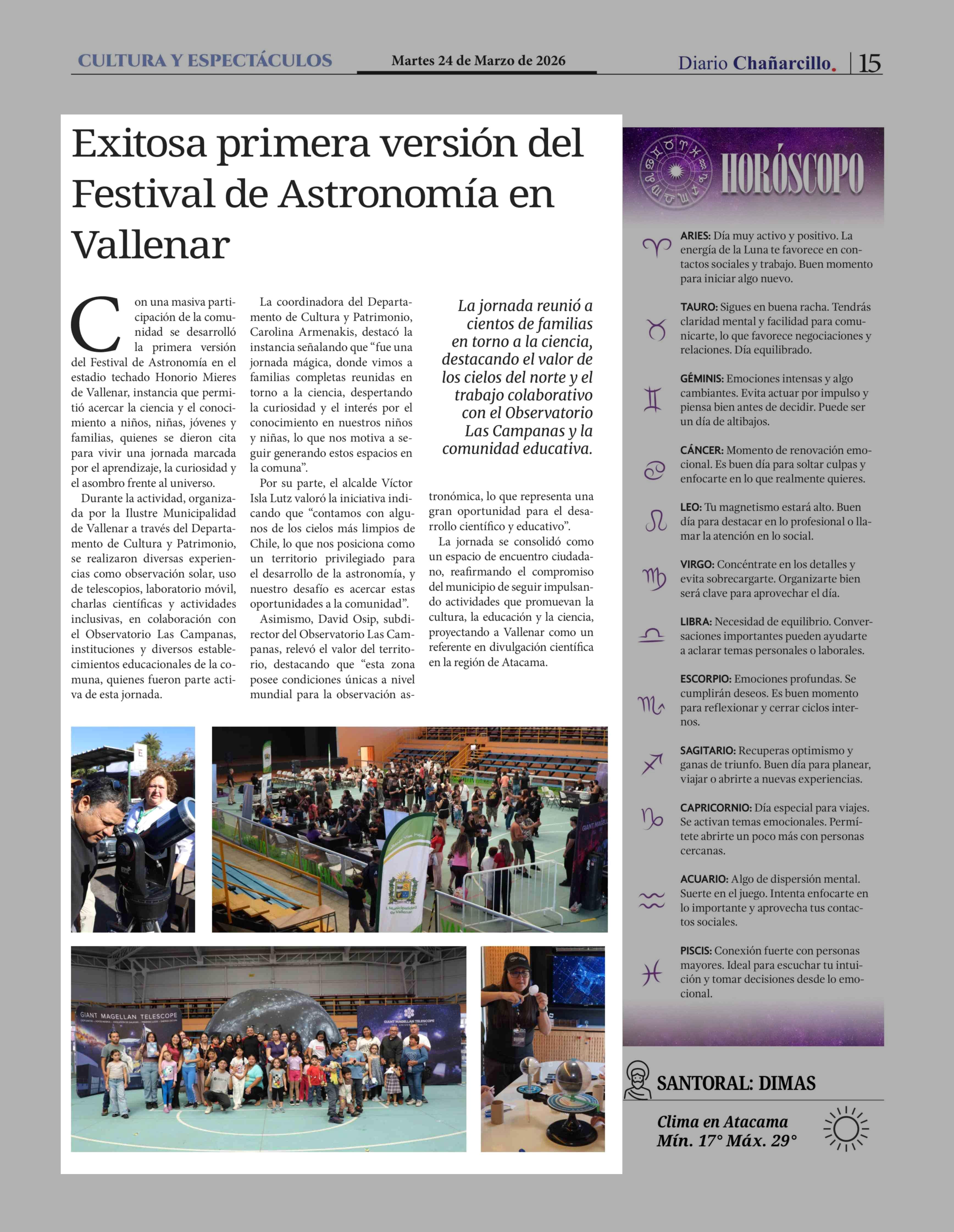 Exitosa primera versión del Festival de Astronomía en Vallenar 24-03-2026 Diario Chañarcillo |