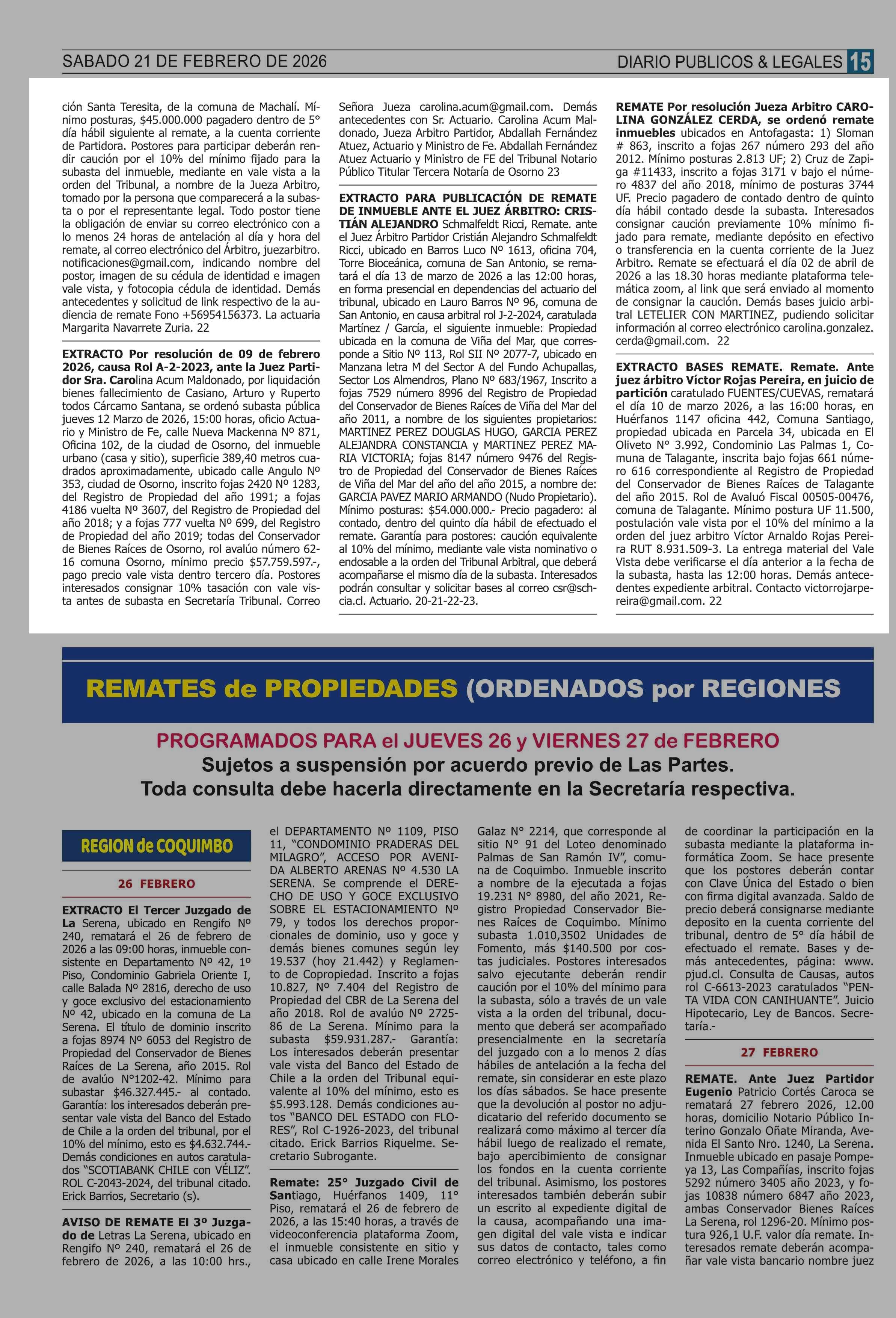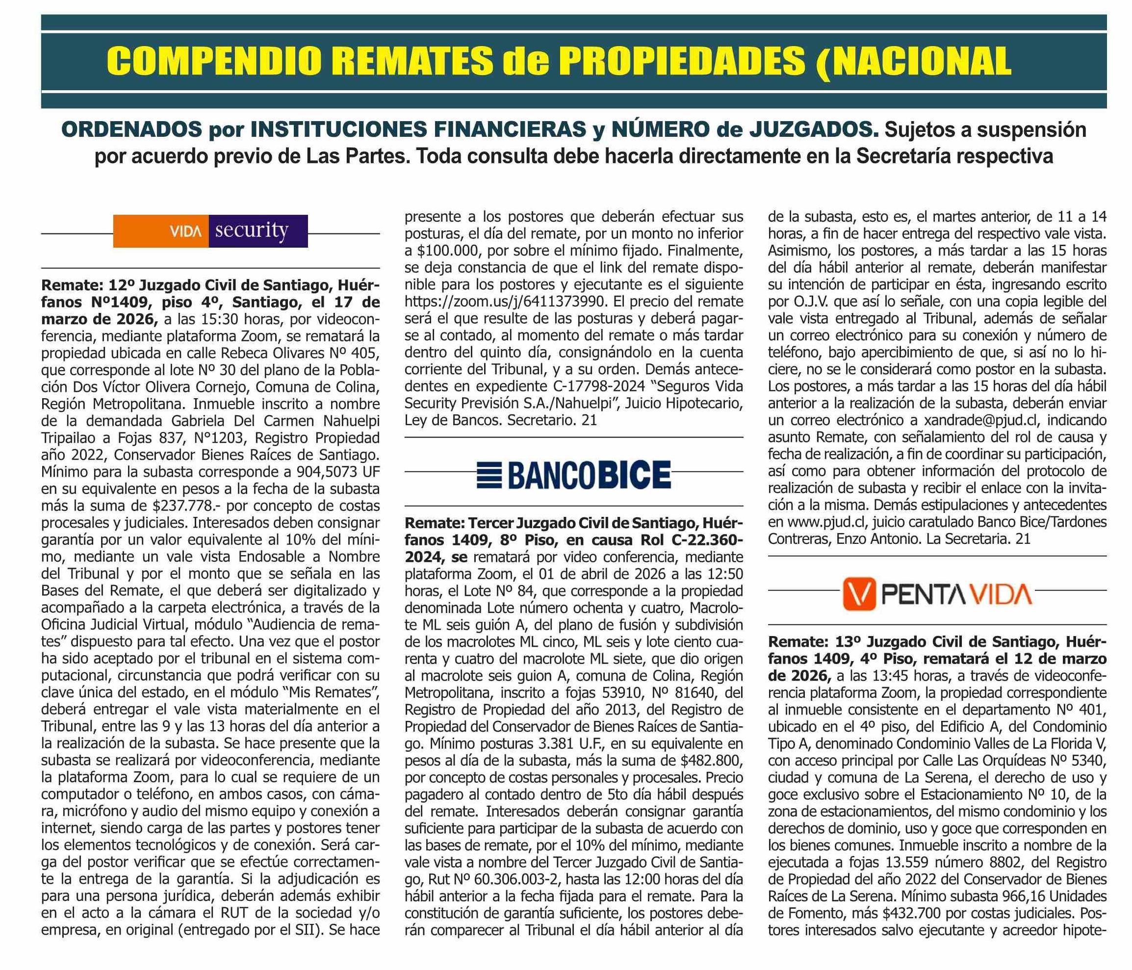 COMPENDIO REMATES de PROPIEDADES (NACIONAL