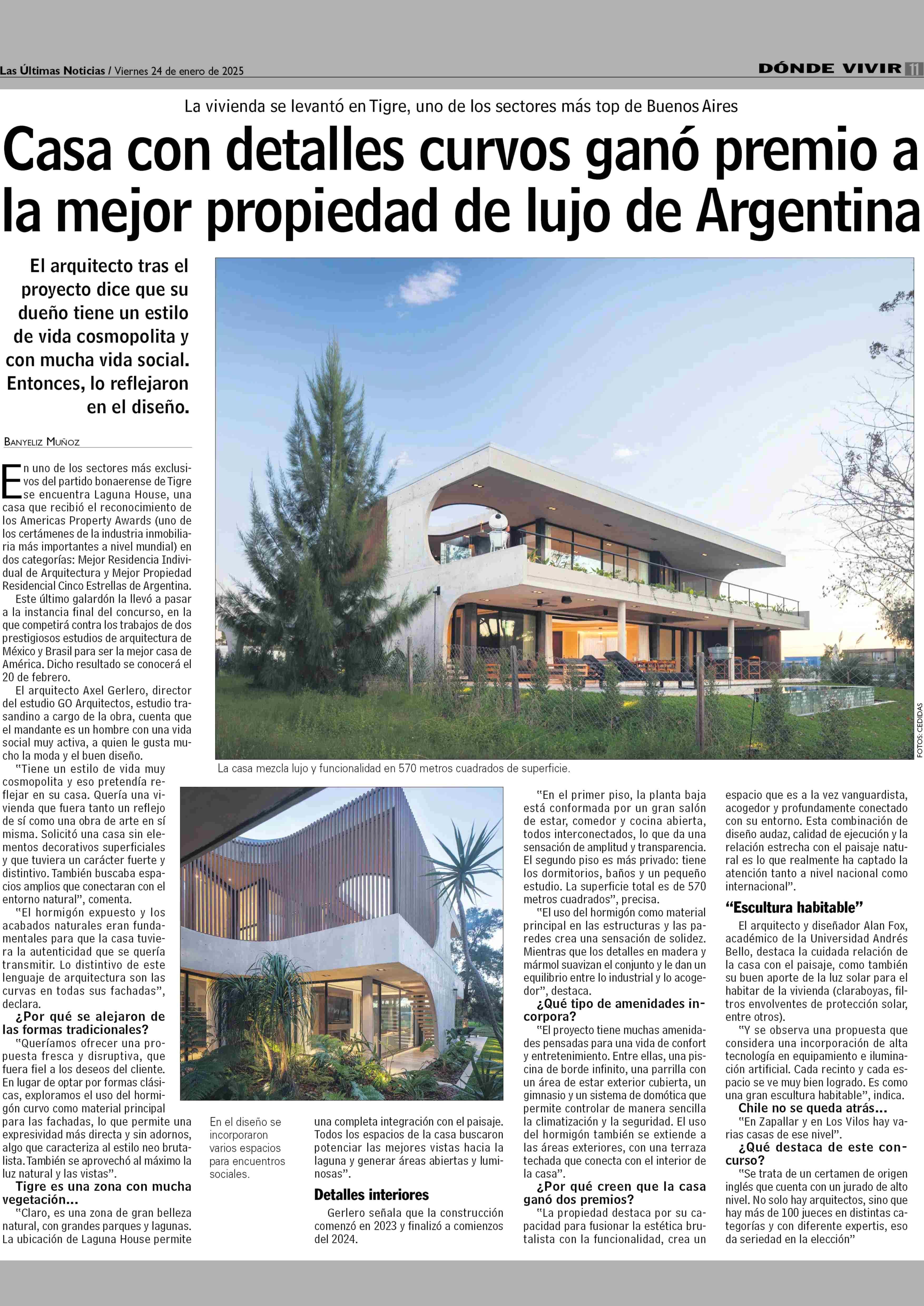 Casa con detalles curvos ganó premio a la mejor propiedad de lujo de Argentina 24-01-2025 Las Últimas Noticias |