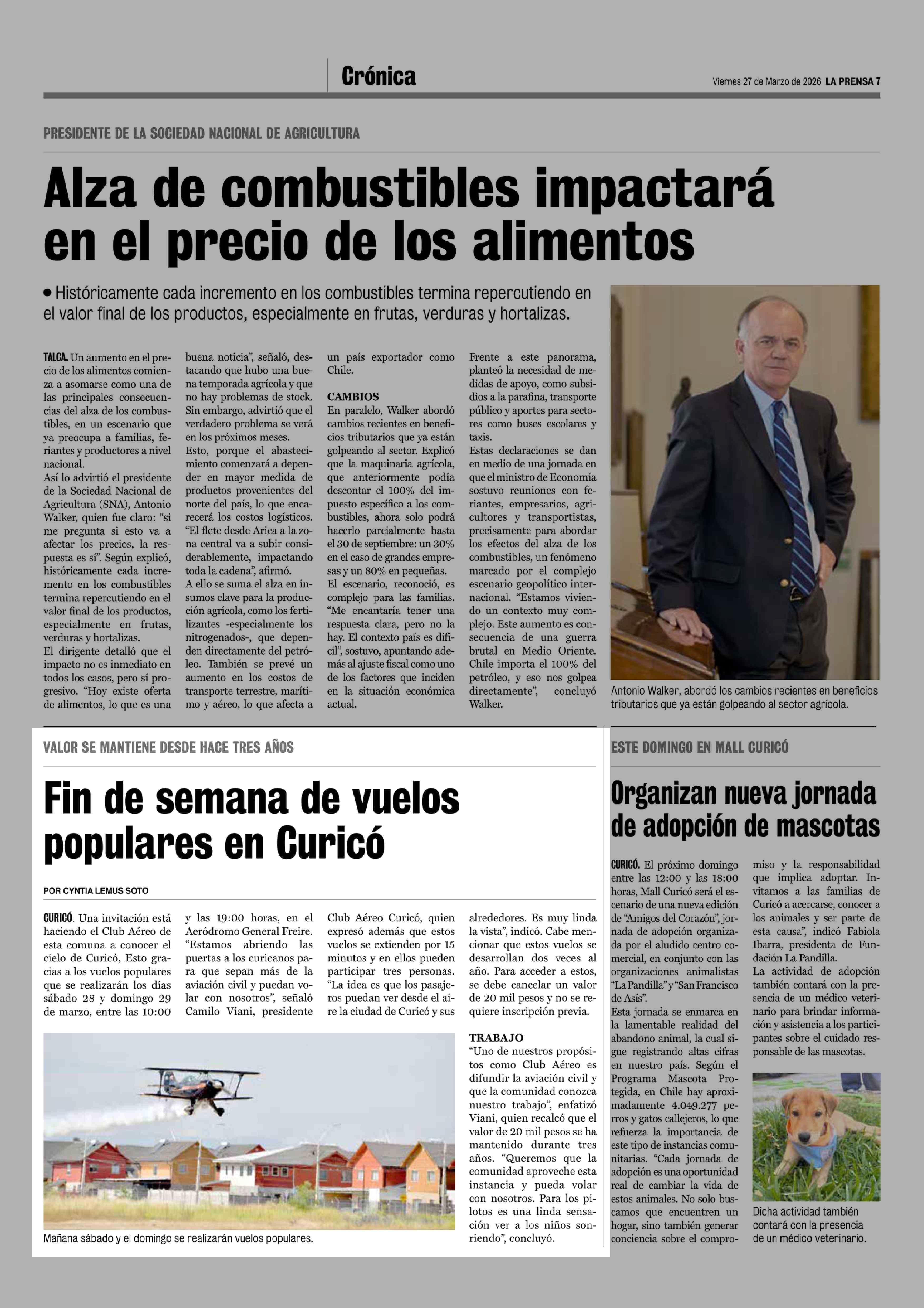 Fecha: 27-03-2026 Sector: Noticia general Región: Región del Maule