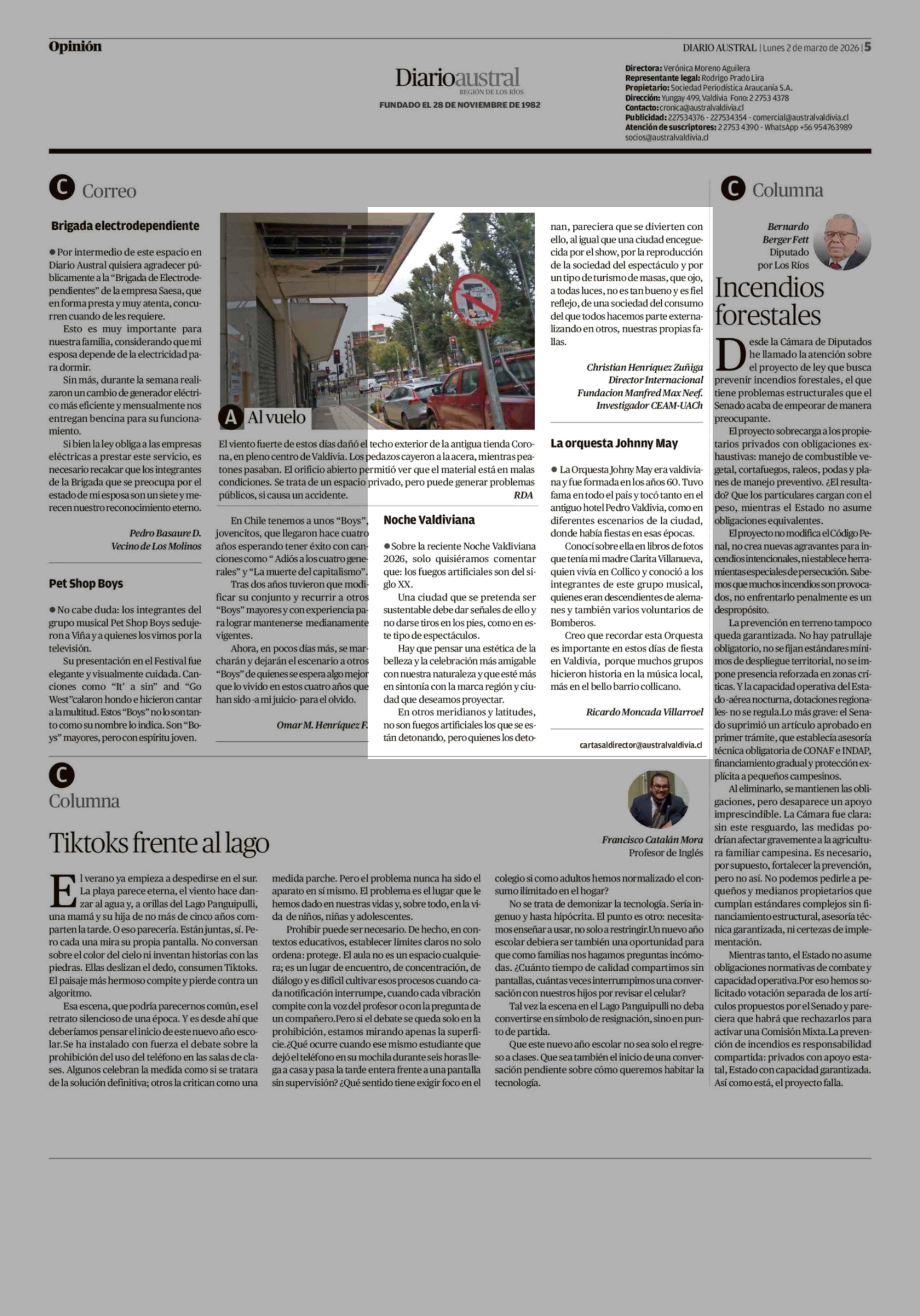 Cartas: Noche Valdiviana 02-03-2026 Diario Austral Región de Los Ríos |
