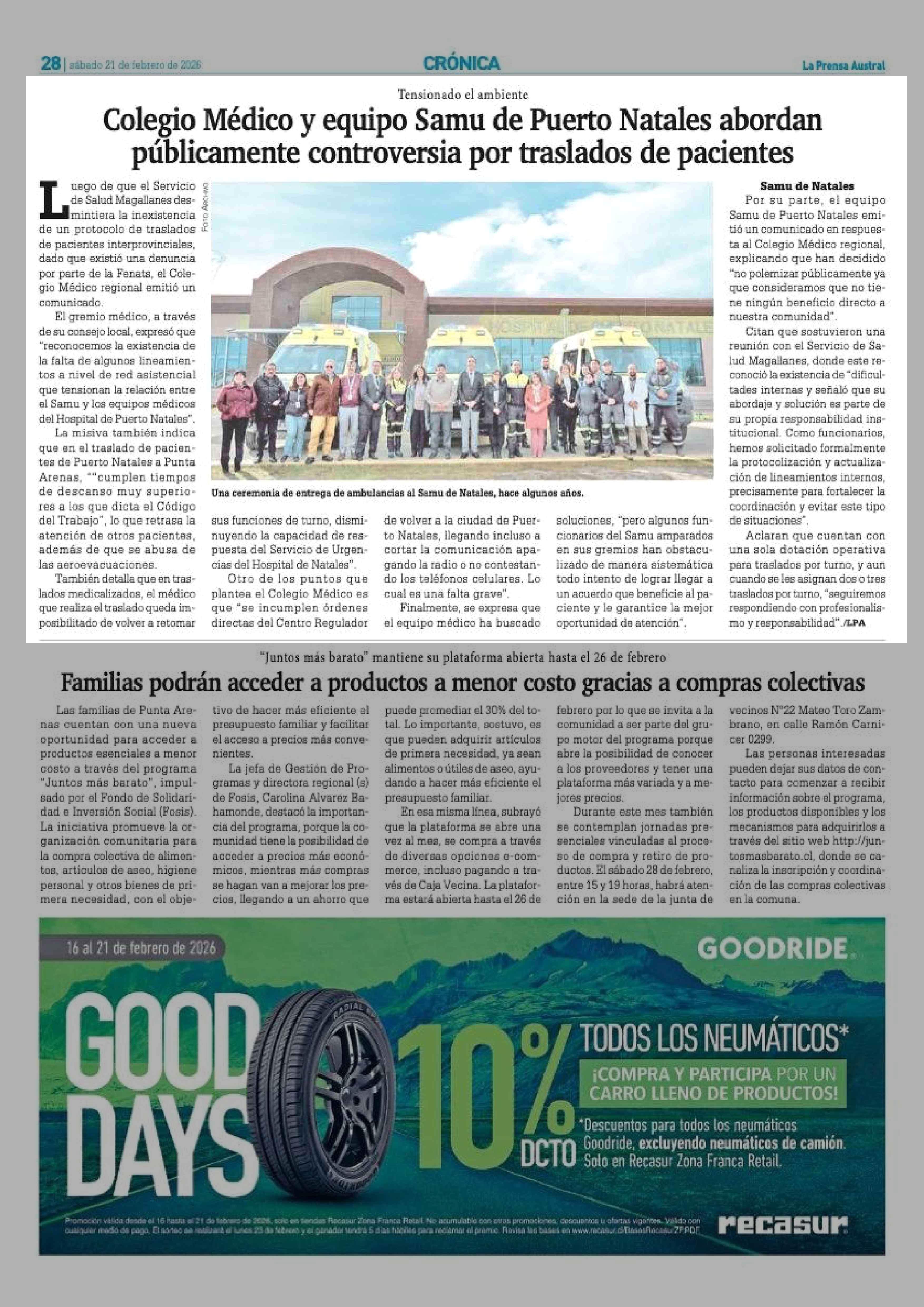 Título: Colegio Médico y equipo Samu de Puerto Natales abordan públicamente controversia por traslados de pacientes