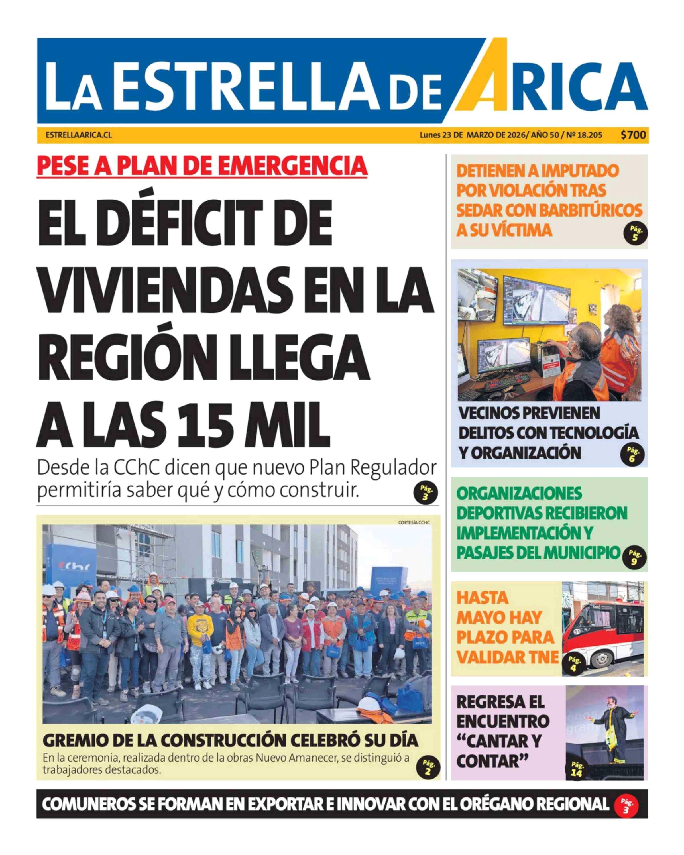 Fecha: 23-03-2026 Sector: Portada Región: Región de Arica y Parinacota