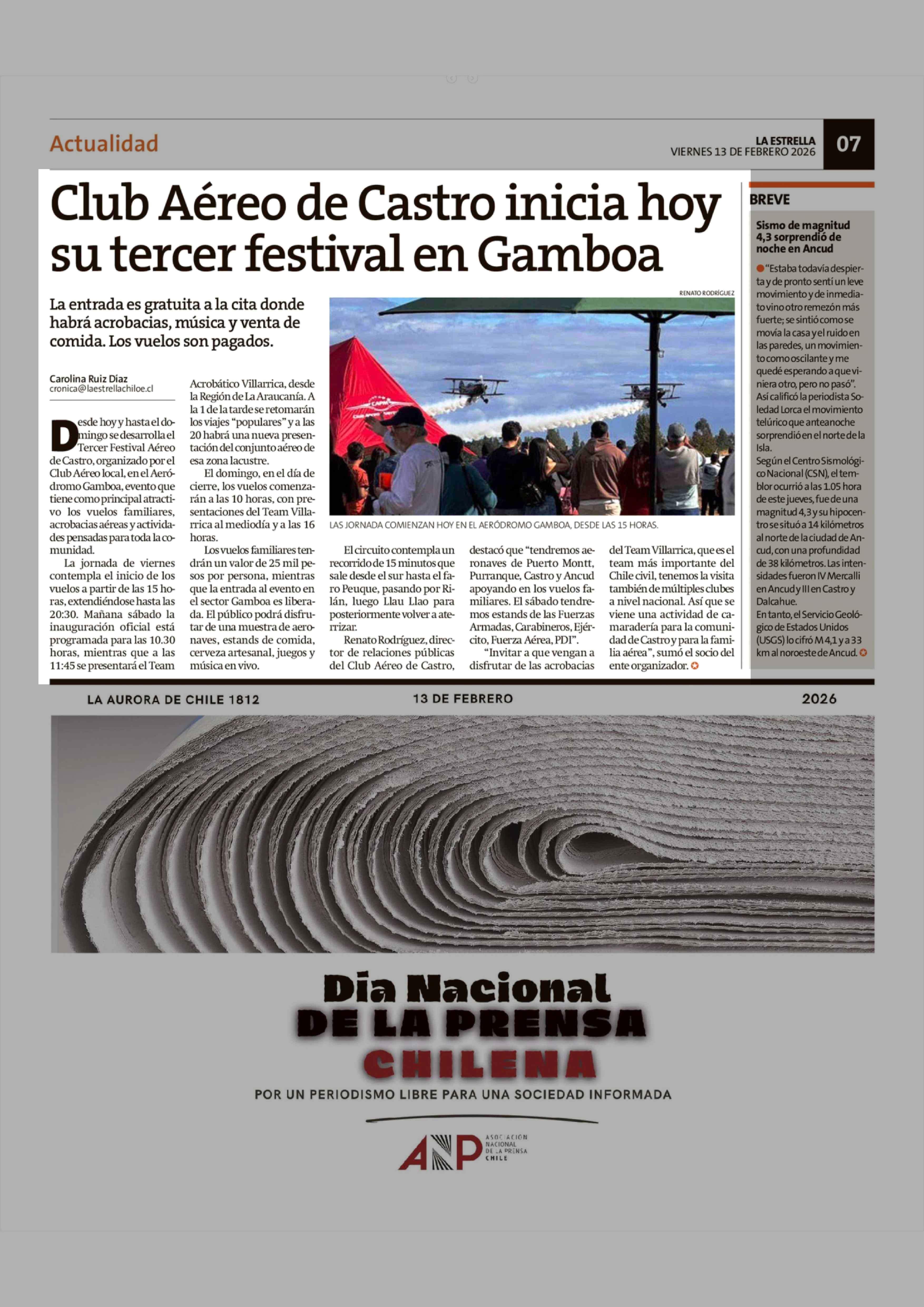 Club Aéreo de Castro inicia hoy su tercer festival en Gamboa 13-02-2026 La Estrella de Chiloé |
