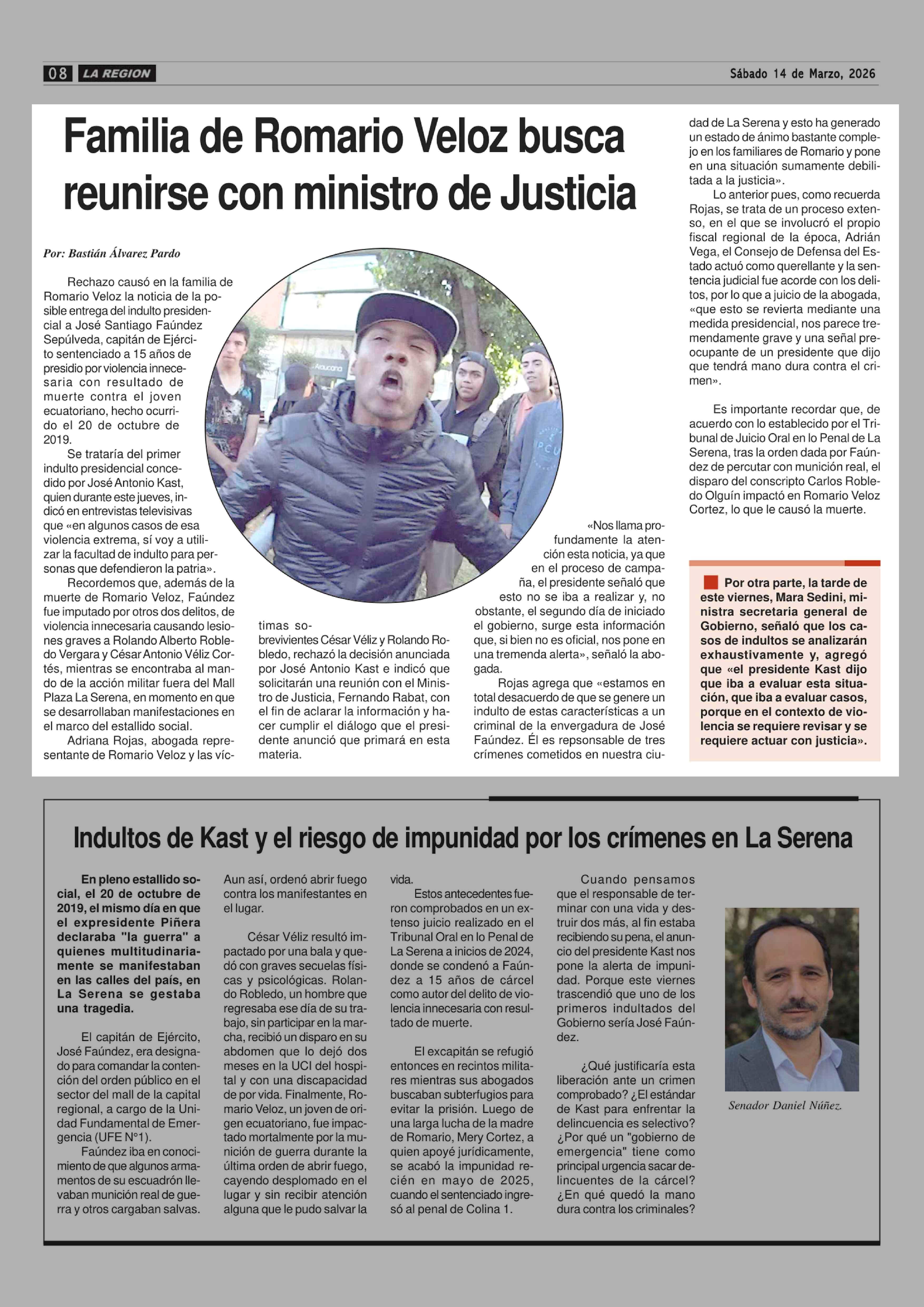 Familia de Romario Veloz busca reunirse con ministro de Justicia 14-03-2026 Diario la Región |