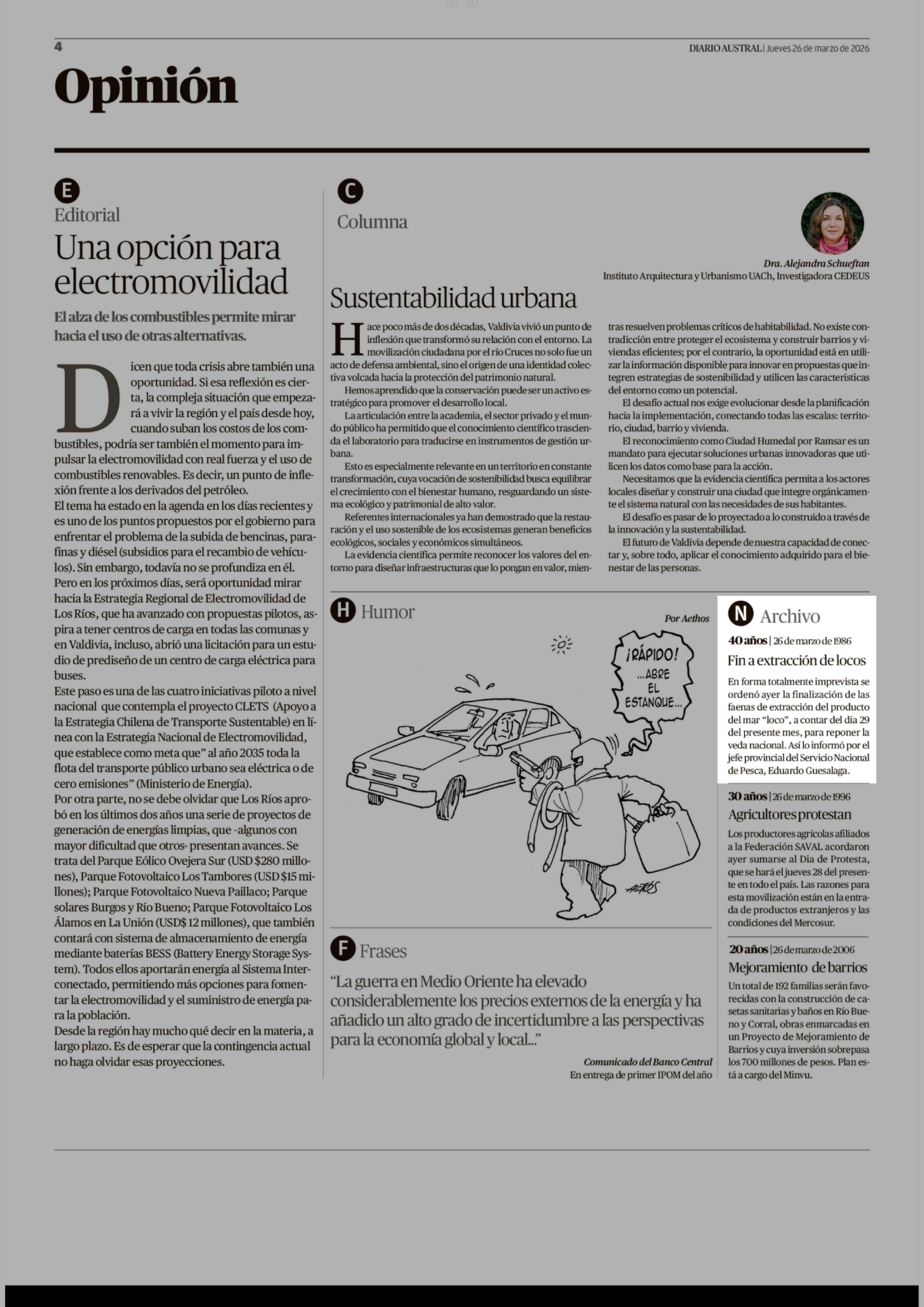 | Fecha: | 26-03-2026 | Sector: | Noticia general | Región: | Región de Los Ríos |