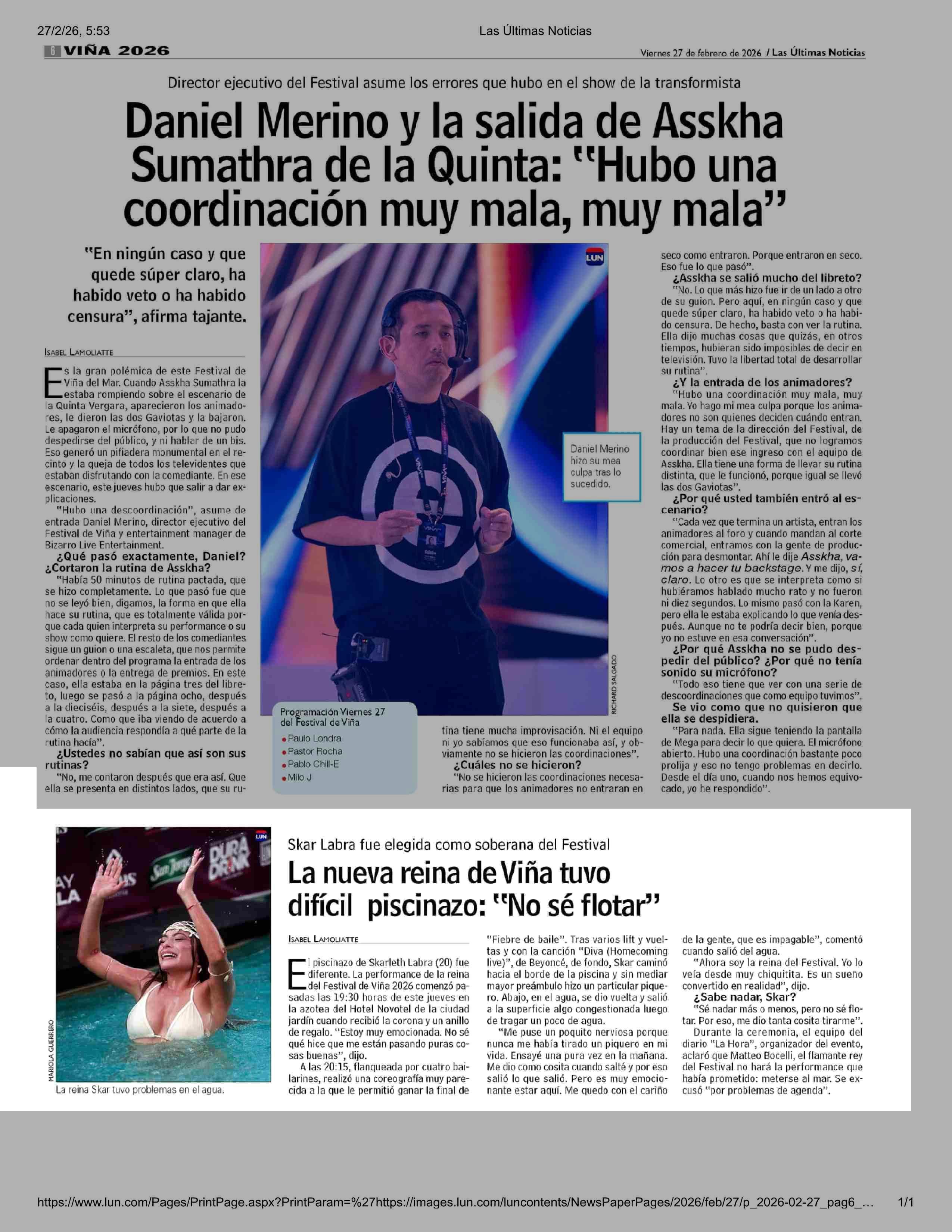 Fuente: Las Últimas Noticias (Las Últimas Noticias Segunda Edición - Chile) Página(s): 6