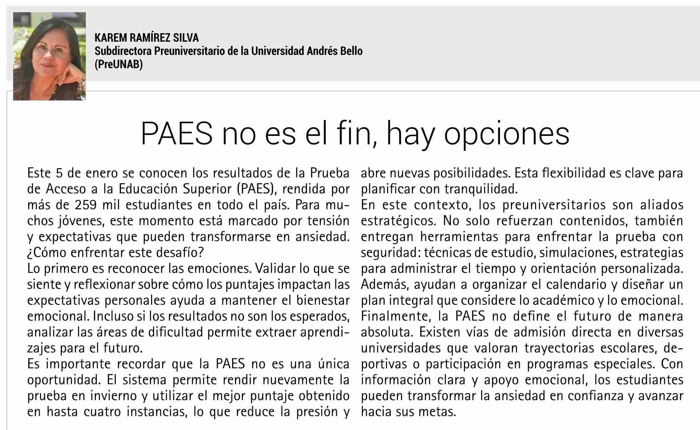 Título: Columnas de Opinión: PAES no es el fin, hay opciones