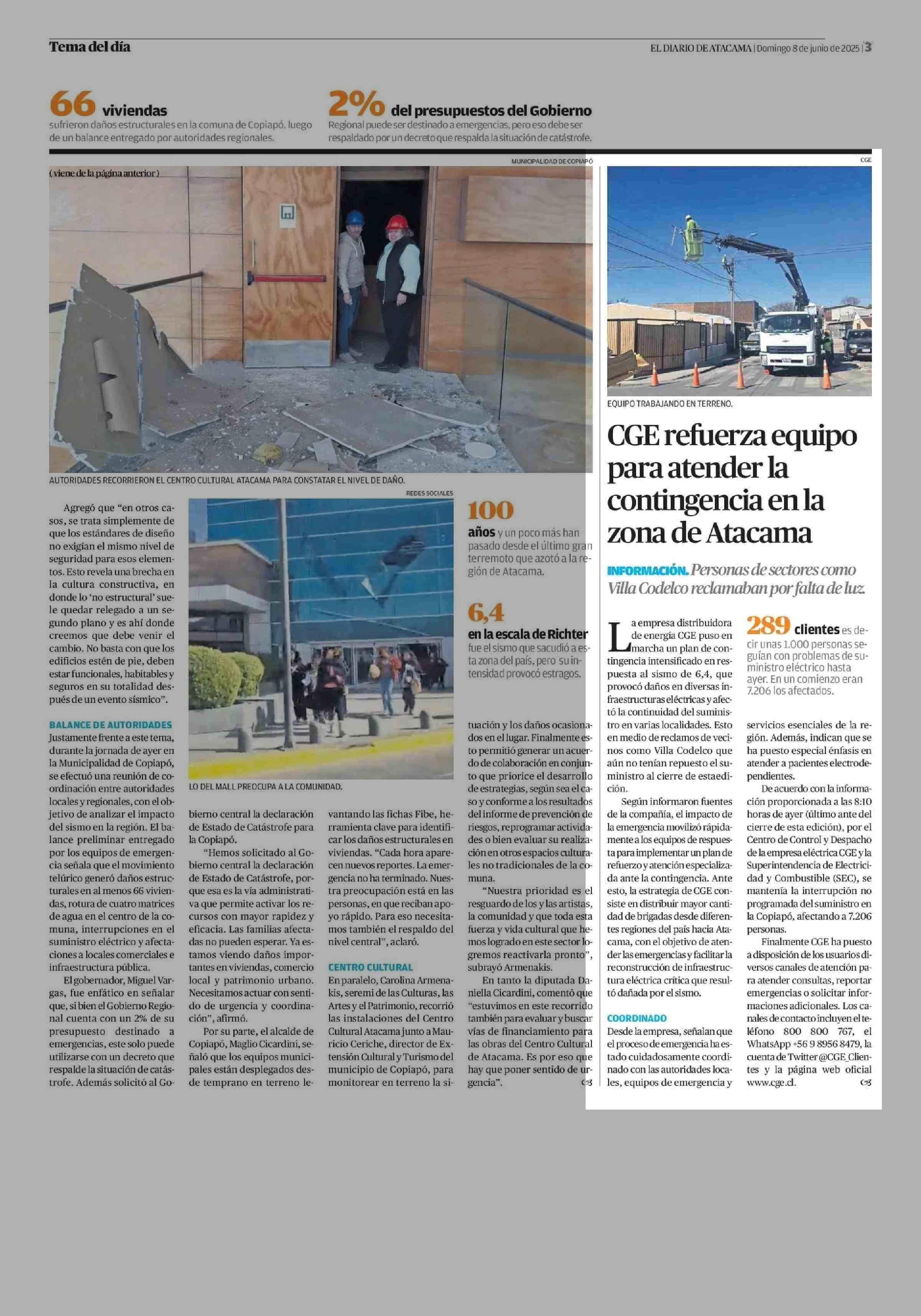 Título: CGE refuerza equipo para atender la contingencia en la zona de Atacama