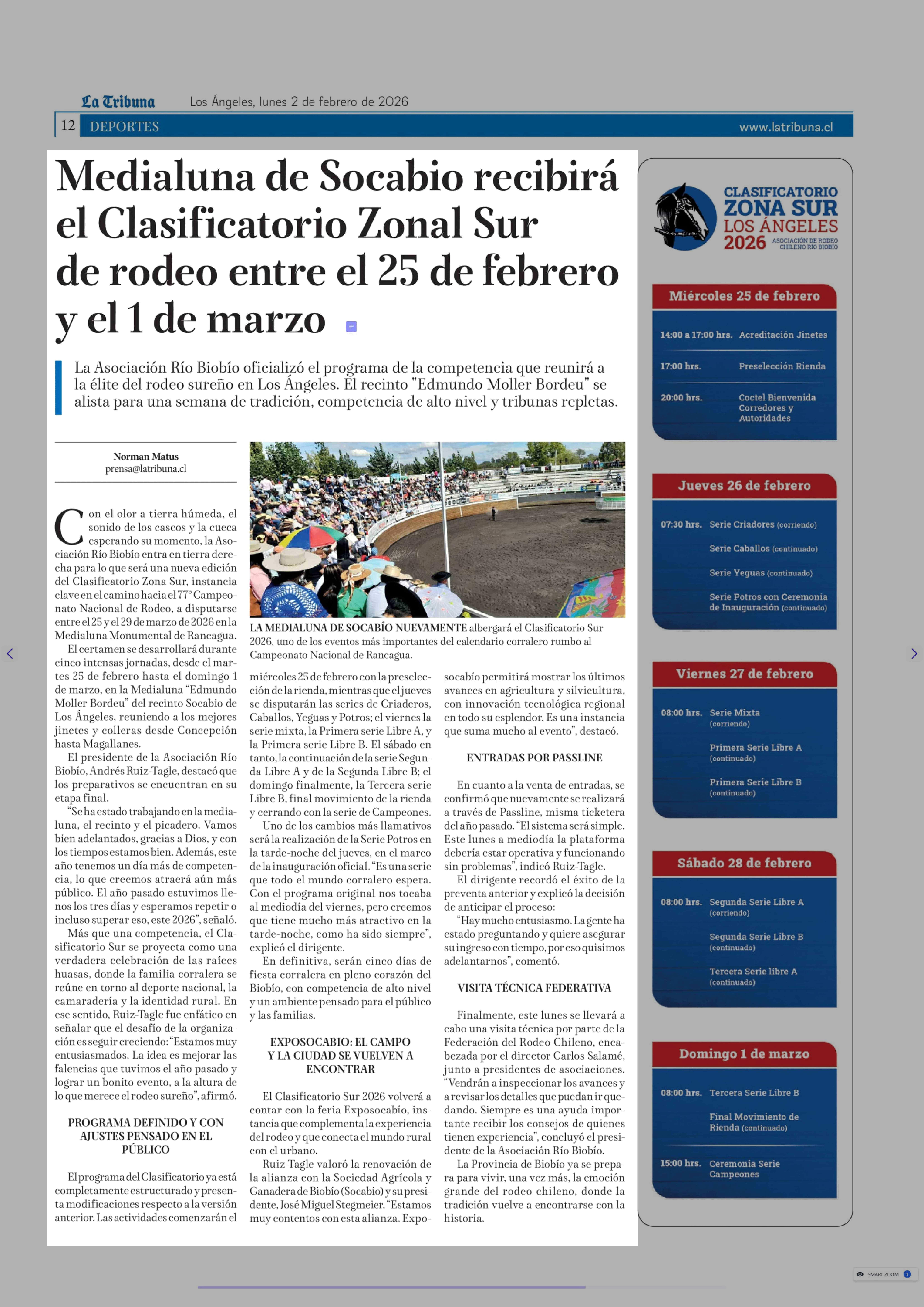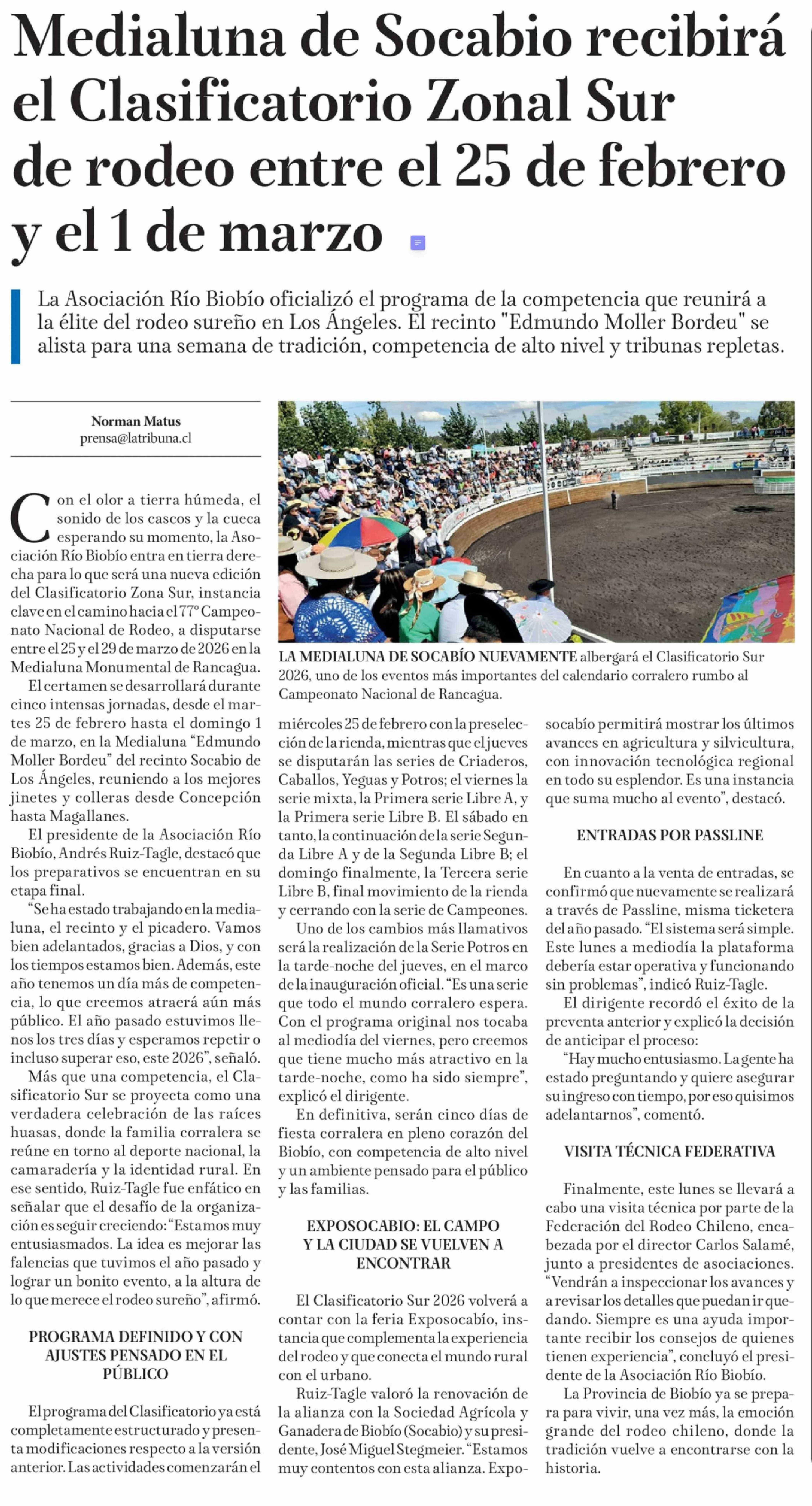Título: Medialuna de Socabio recibirá el Clasificatorio Zonal Sur de rodeo entre el 25 de febrero y el 1 de marzo