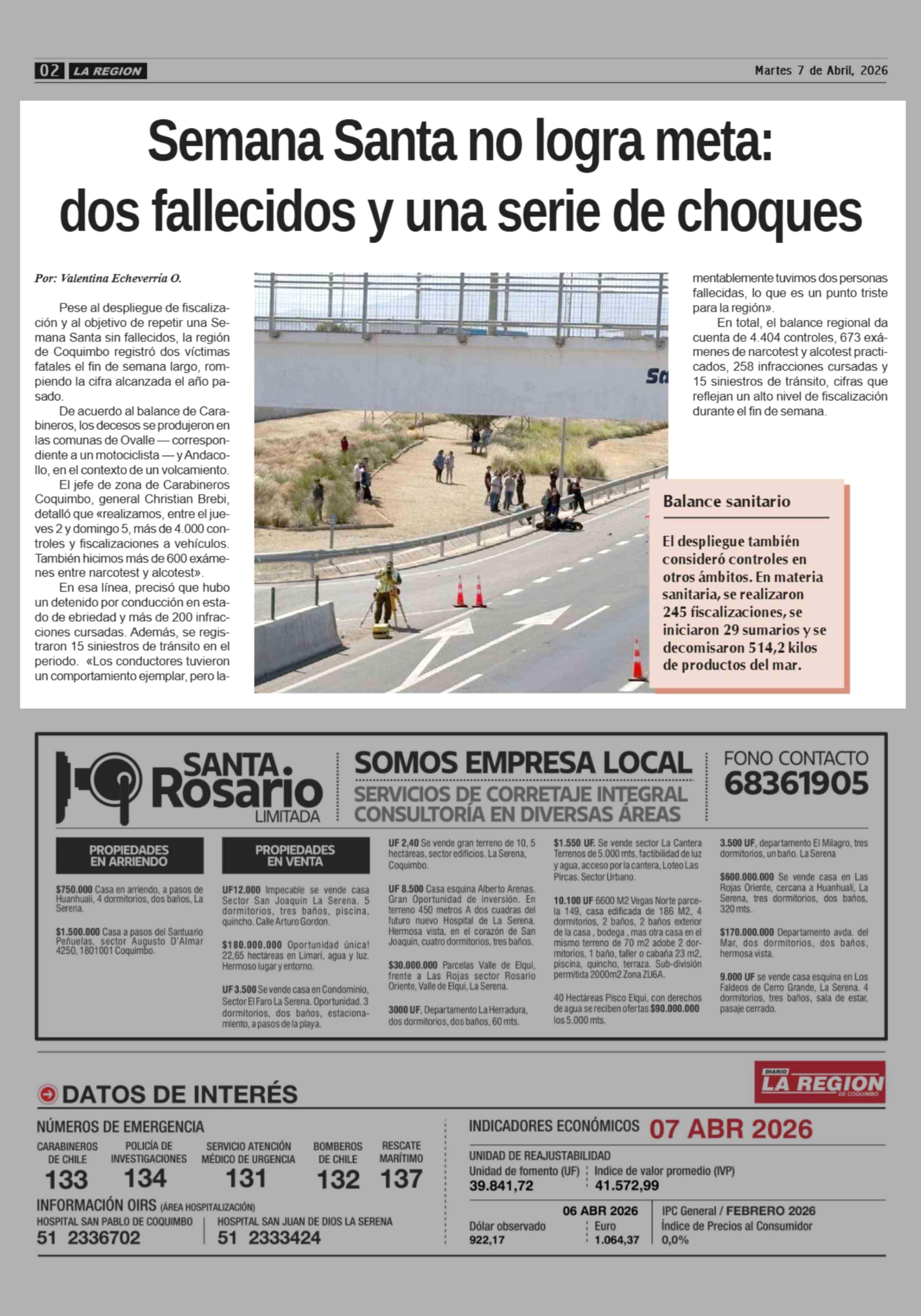 Semana Santa no logra meta: dos fallecidos y una serie de choques 07-04-2026 Diario la Región |