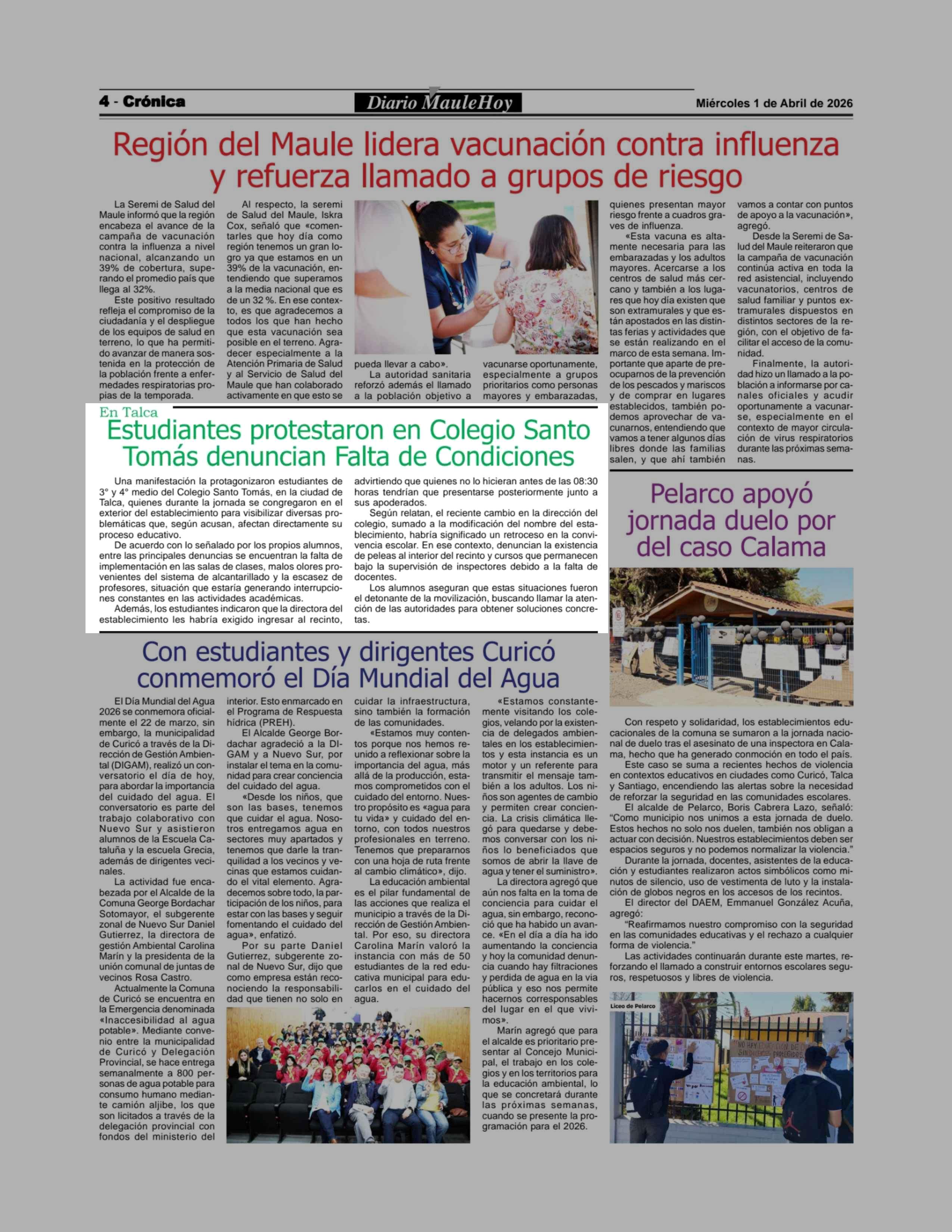 | Fecha: | 01-04-2026 | Sector: | Noticia general | Región: | Región del Maule |