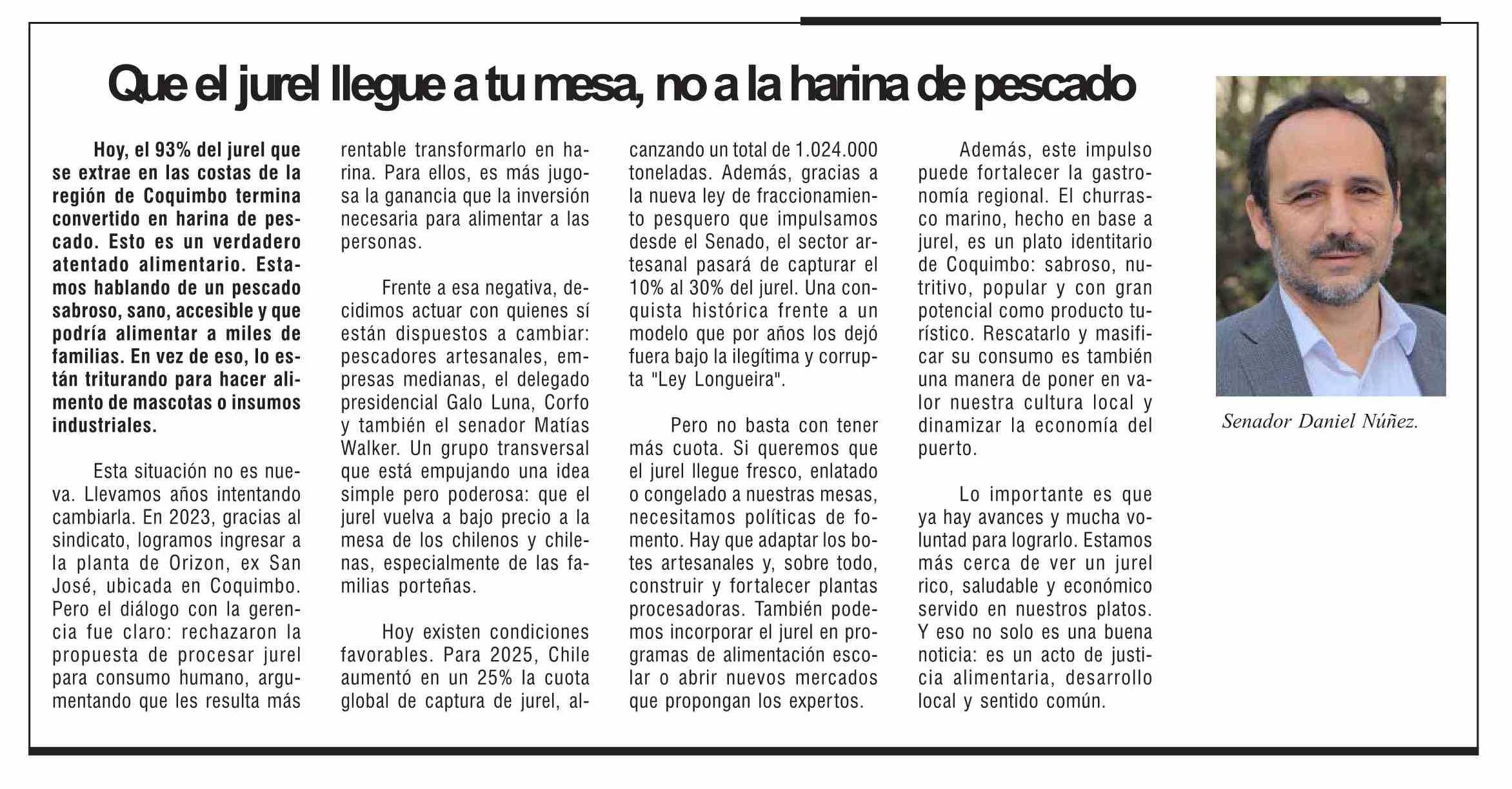 COLUMNAS DE OPINIÓN: Que el jurel llegue a tu mesa, no a la harina de pescado 08-06-2025 Diario la Región |