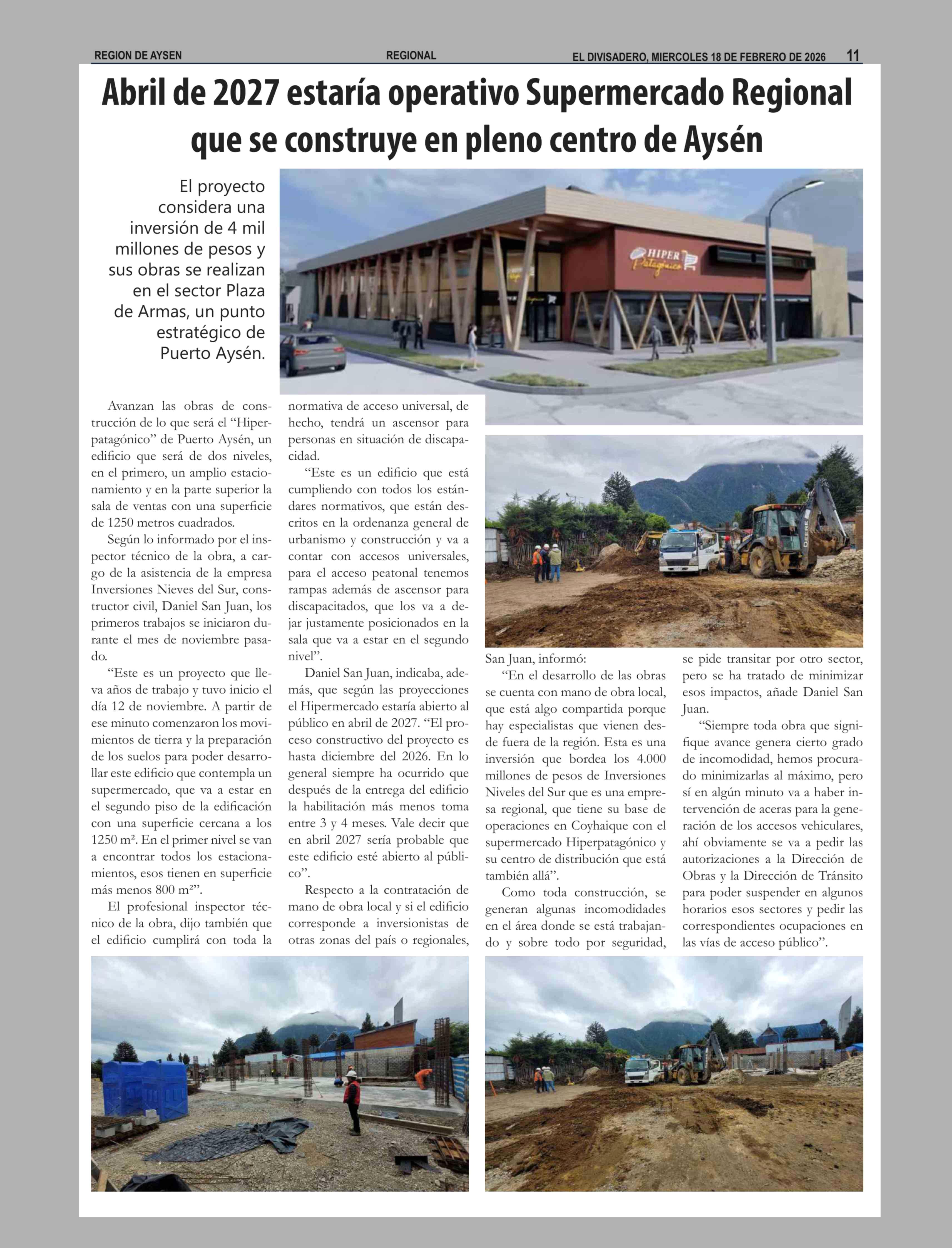 | Título: | Abril de 2027 estaría operativo Supermercado Regional que se construye en pleno centro de Aysén |